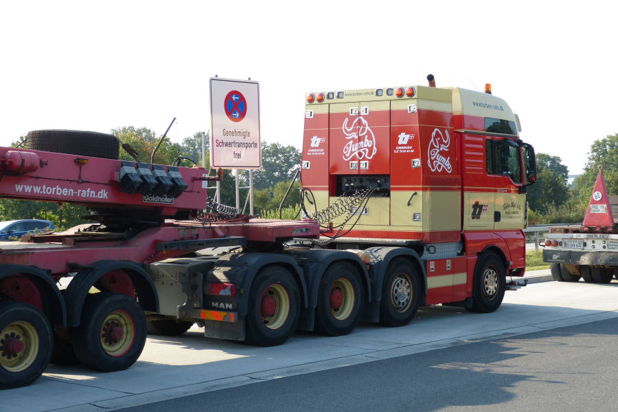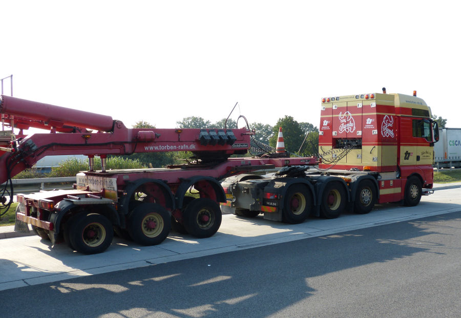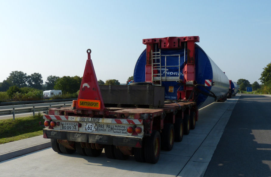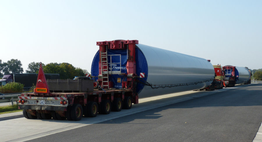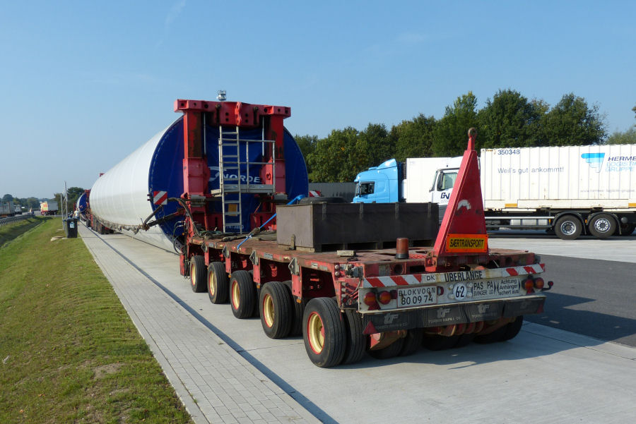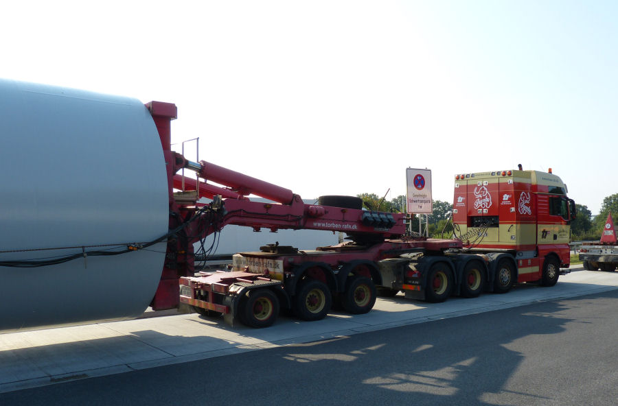 MAN 41.540 TGX mit Goldhofer Turmadapterkombinationen und Nordex WEA Turmteil