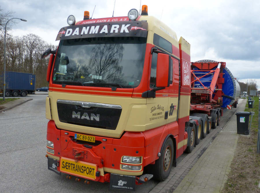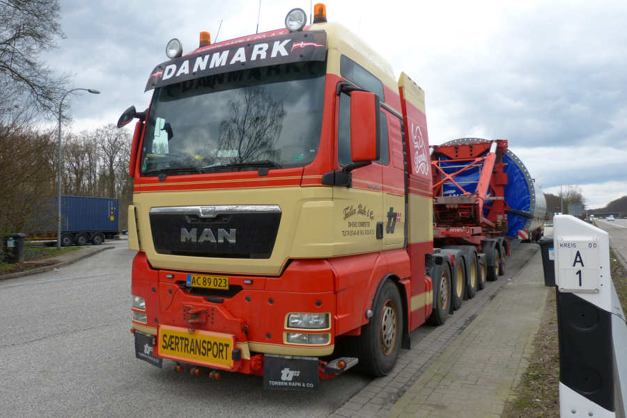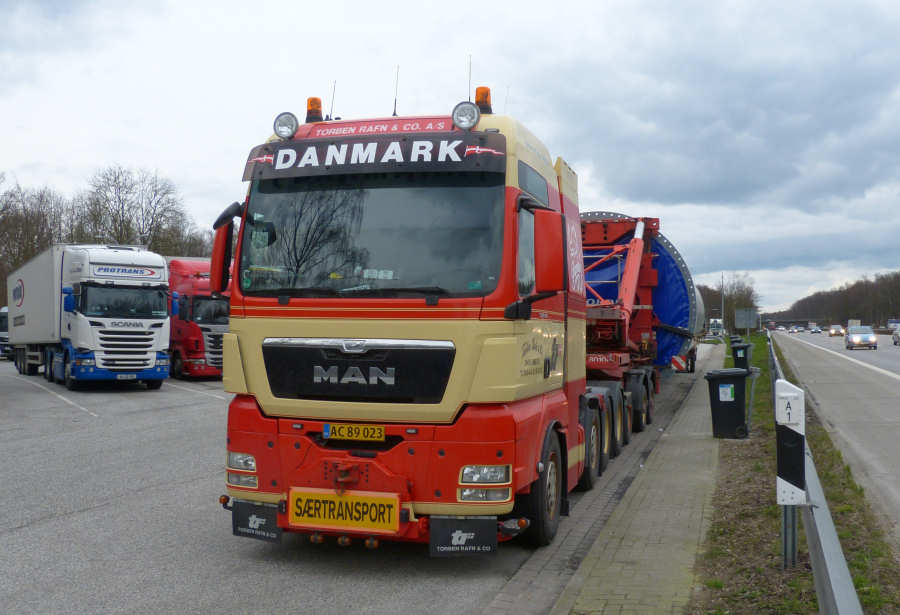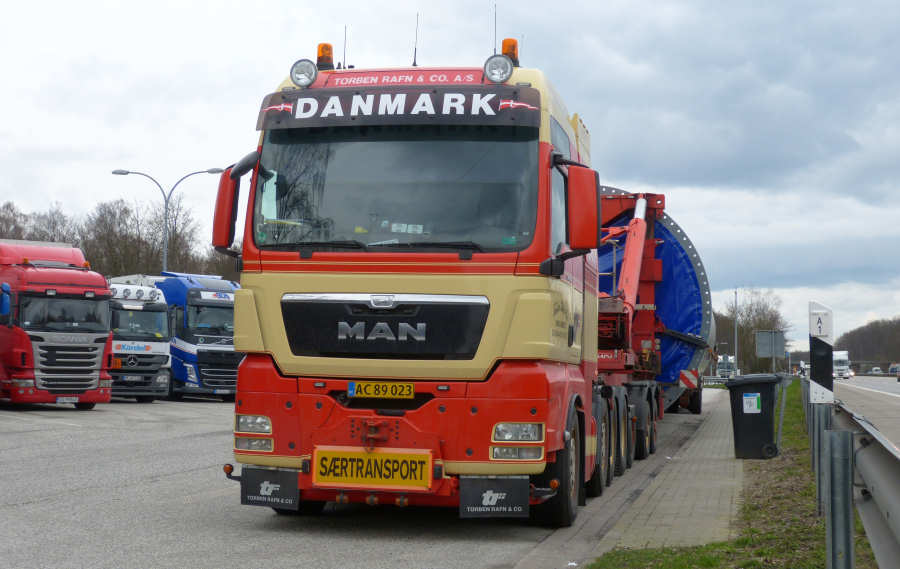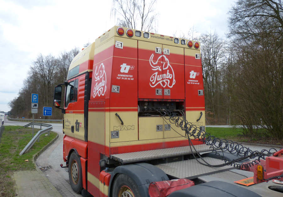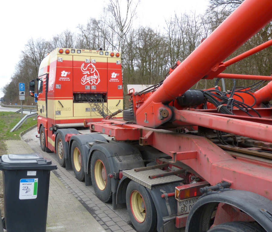 Im März 2016 stand eine große Goldhofer Turmadapterkombination von Torben Rafn auf dem Rasthof