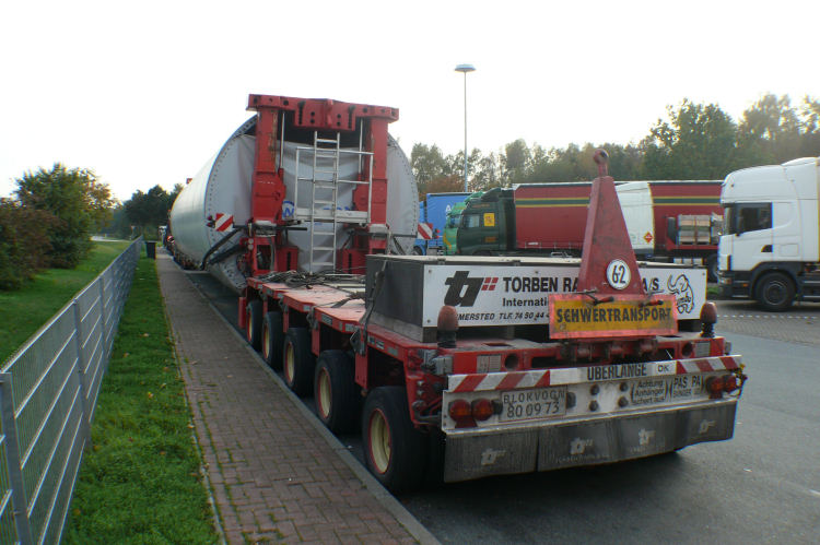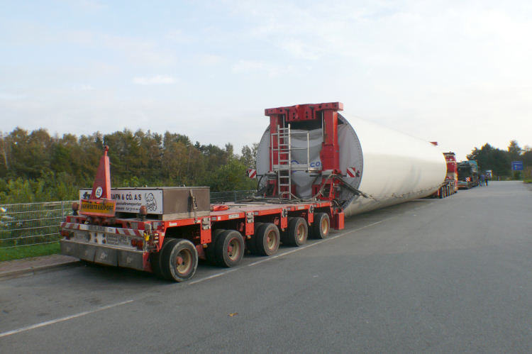 Die Ladung bestand aus Teilen eines Windkraftanlagenturmes für eine Nordex Wka.