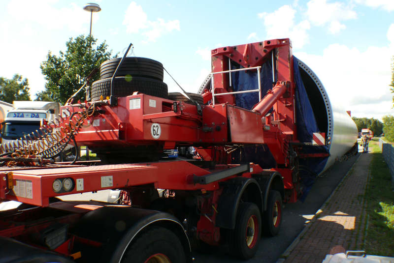Im Juli konnte ich die MB 4157 Titan mit Goldhofer Turmadapter Kombination und Vestas Turmteil