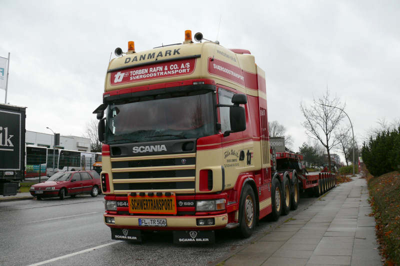 Im November 2010 stand diese Scania 164 580 mit Goldhofer 8 achs Semi in einem Gewerbegebiet in HH Hummelsbüttel.