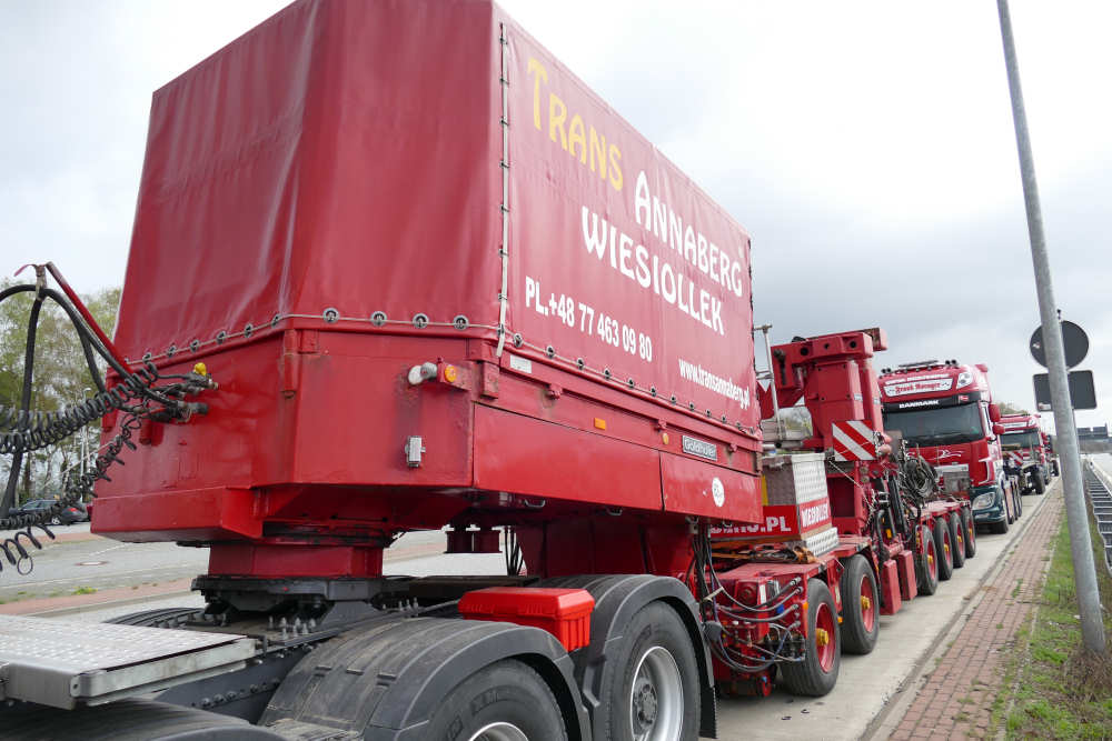 Im April 2017 konnte ich diese WEA Transportkombination von Wiesiollek auf Leerfahrt,