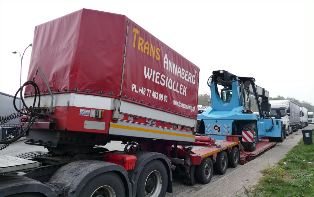 Da es sich um einen kleineren Containerlader handelte konnte er komplett gefahren werden.