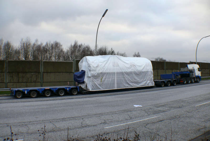 Harburger Berge, Richtung Hamburg. Bei der Fracht handelte es sich um ein großes