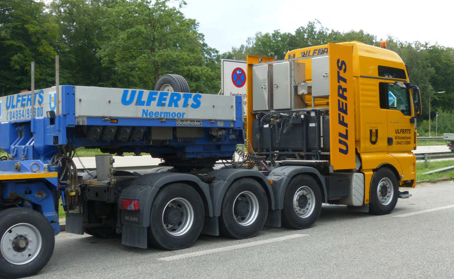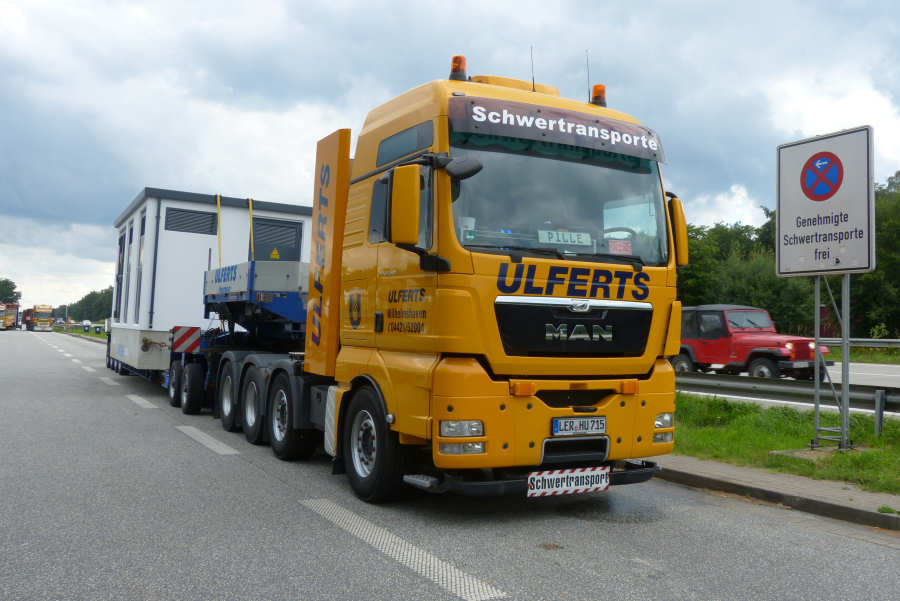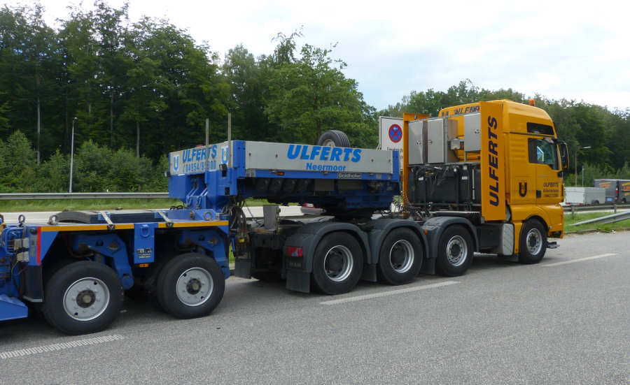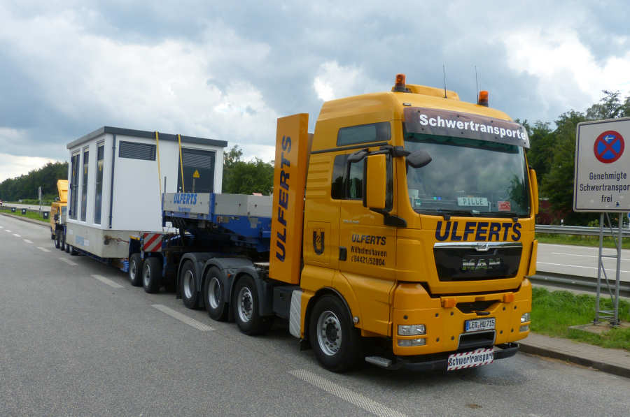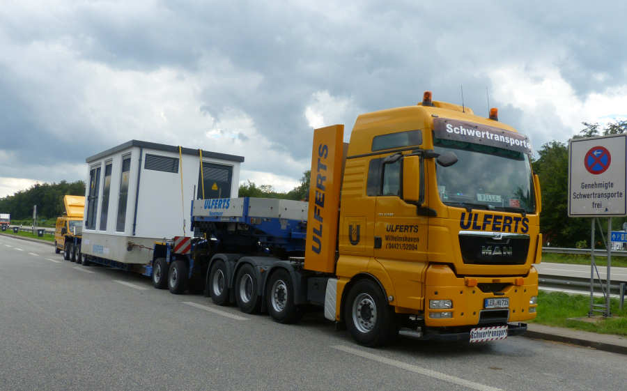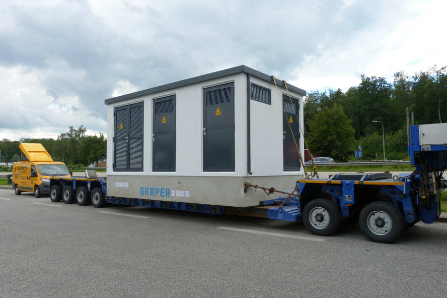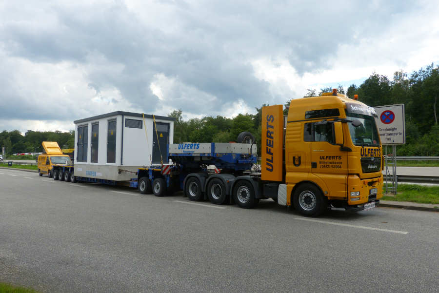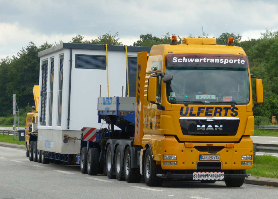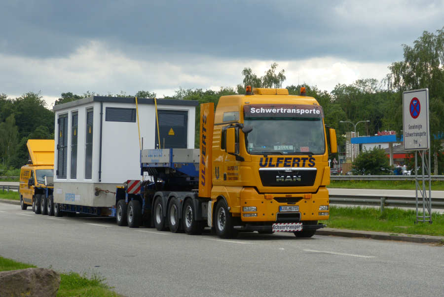 MAN 41.540 TGX mit Goldhofer THP XLE 2/4 Tieflader und Trafostation