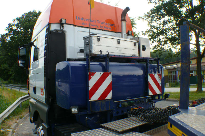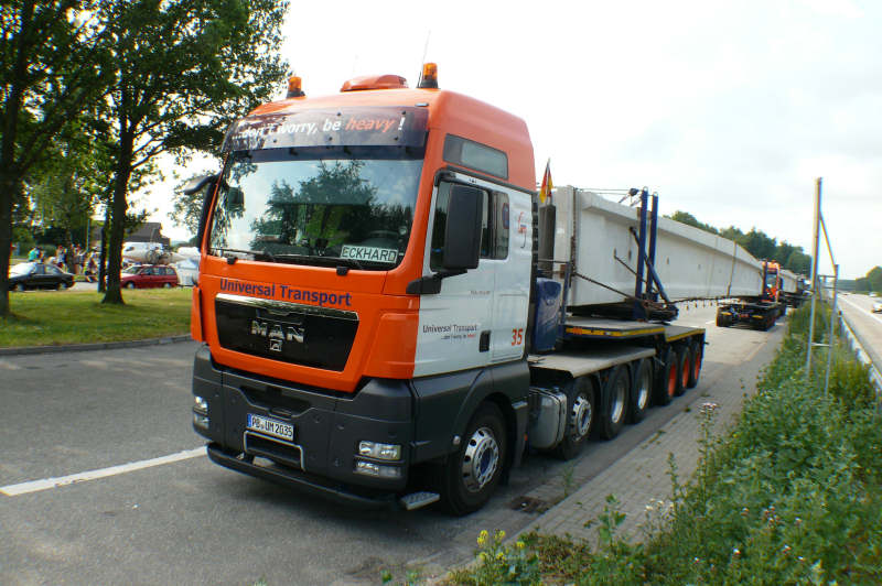Bei den Zugmaschinen handelte es sich um MAN 41.540 TGX, welche dreiachsige Dollys und fünf-/