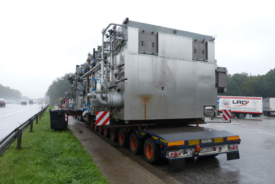 Die Ladung bestand aus einer gebrauchten Flaschenspülanlage des Herstellers KHS, auf dem Weg in den Norden.