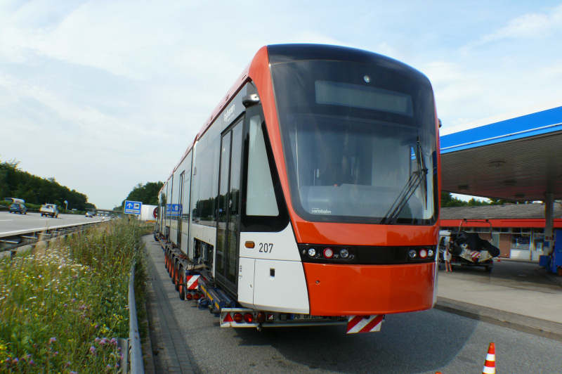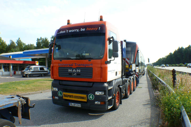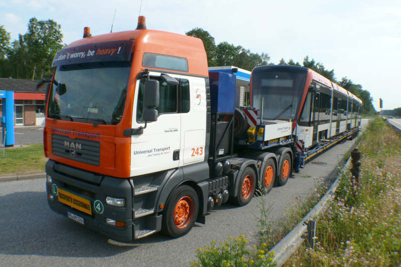 Diesen Transport einer Straßenbahn für Norwegen, konnte ich im Juli 2010 auf dem Rasthof Buddikate an der A 1 fotografieren