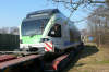 Im Februar 2011 stand die Zugmaschine ohne Dolly, mit verlängertem Kesselbett, beladen mit einem Triebwagen,