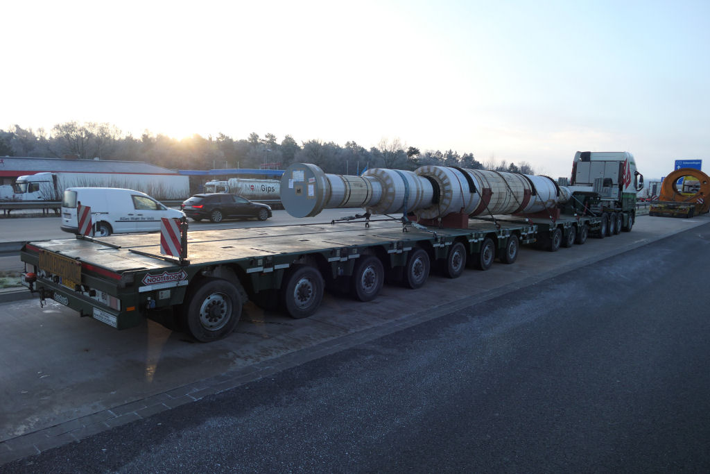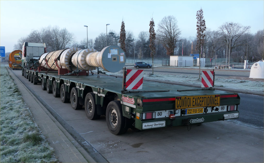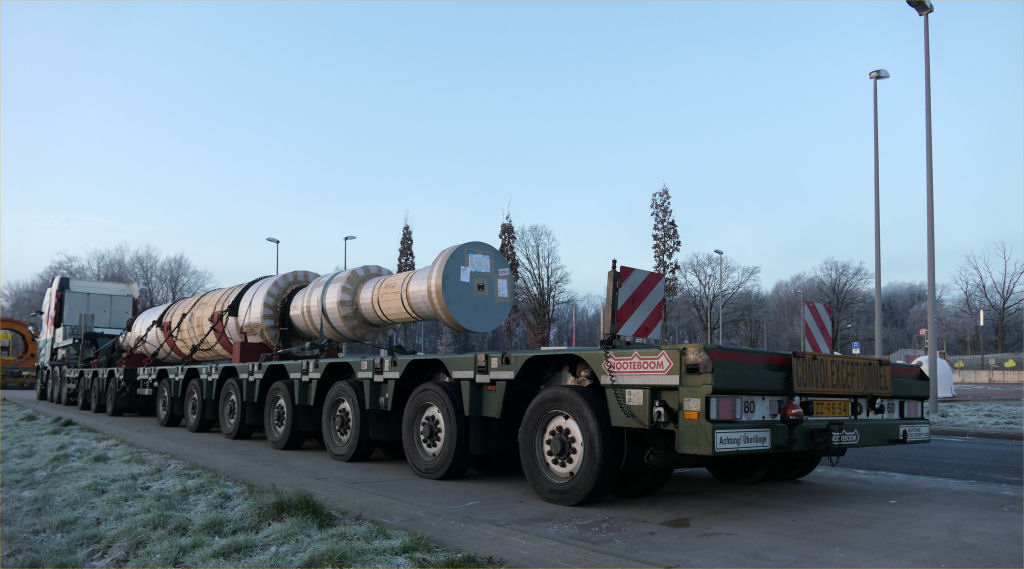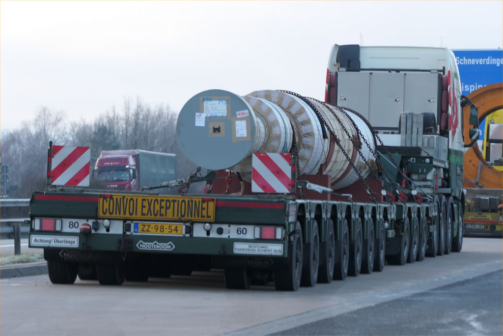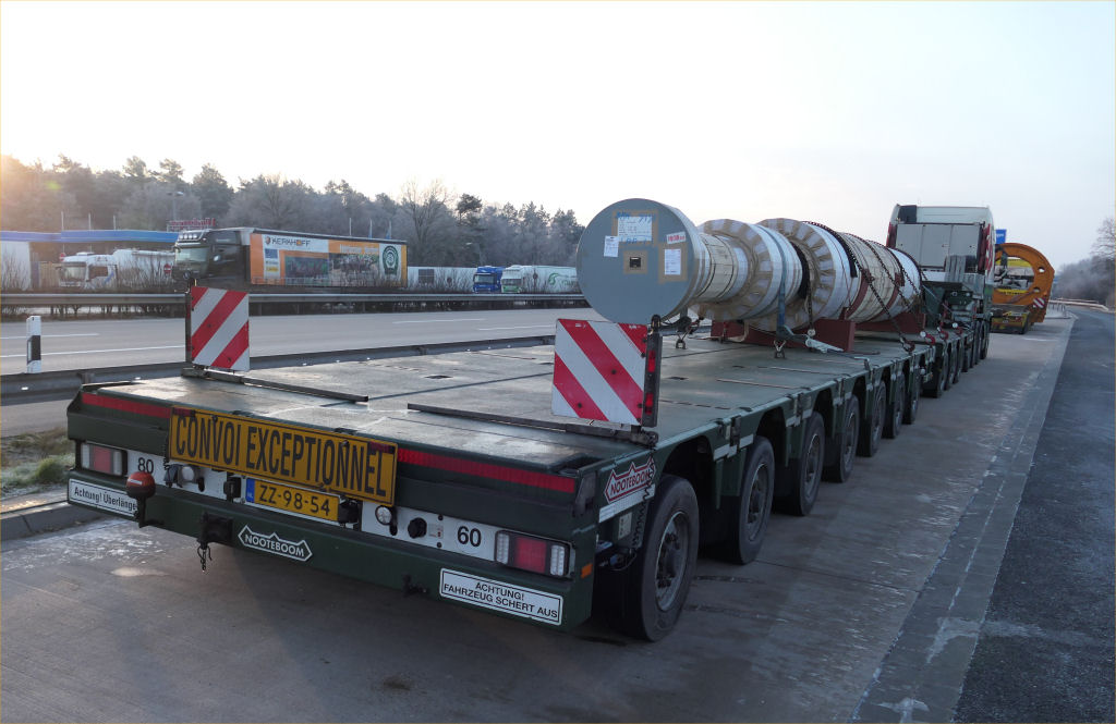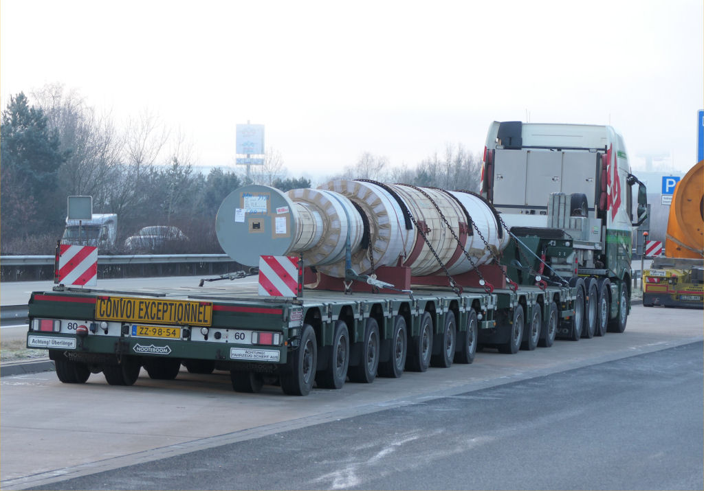 Volvo FH 16 750 8x4 mit Nooteboom 3-7 Tieflader und Generatorwelle