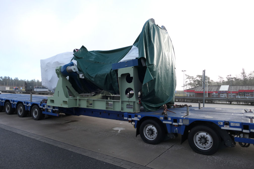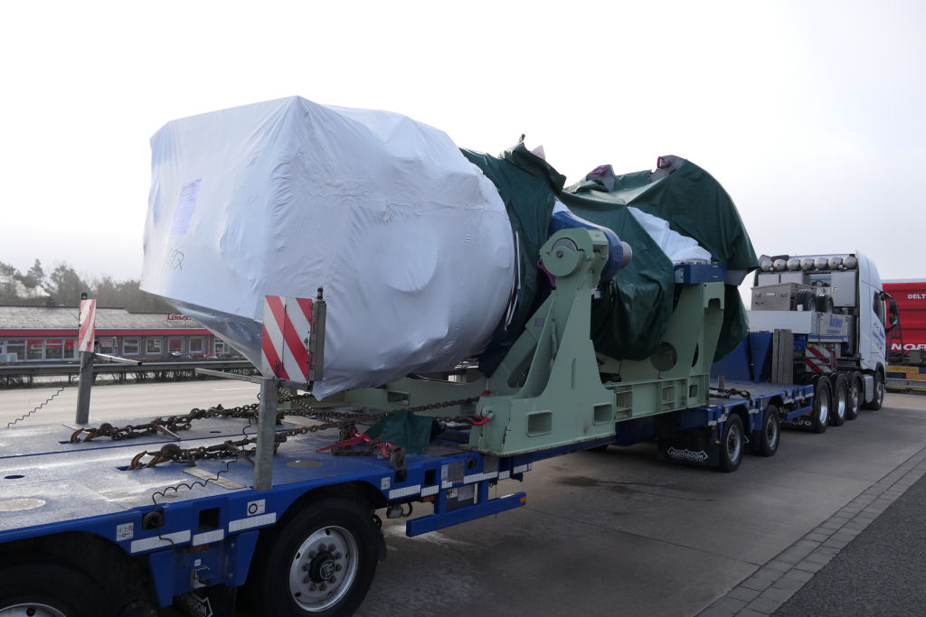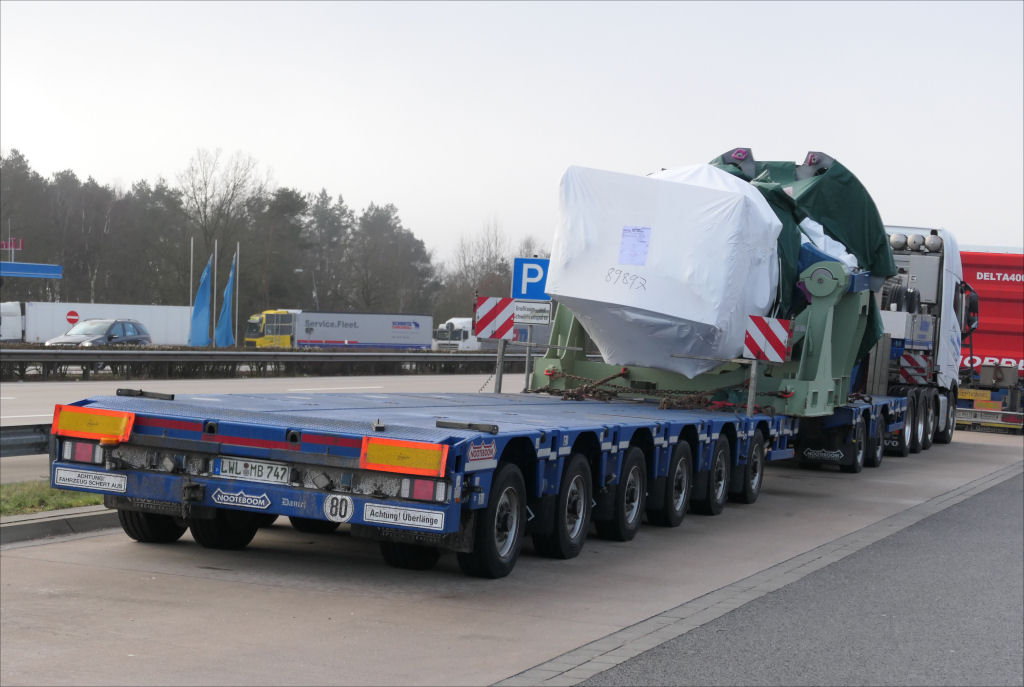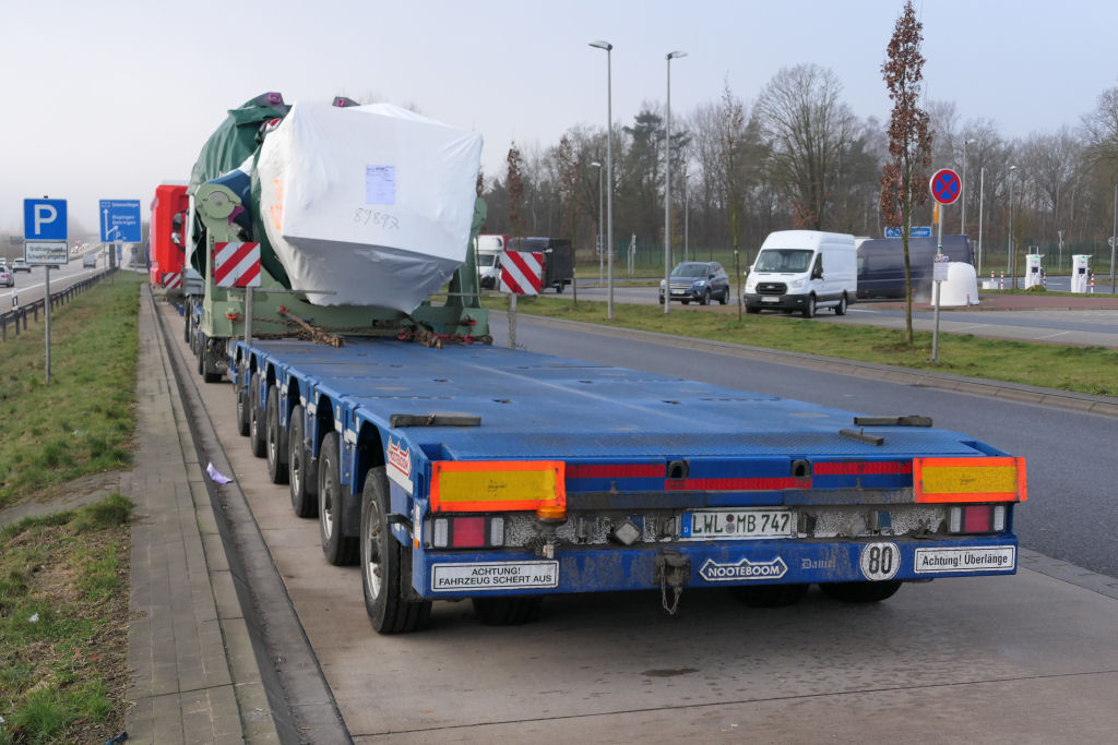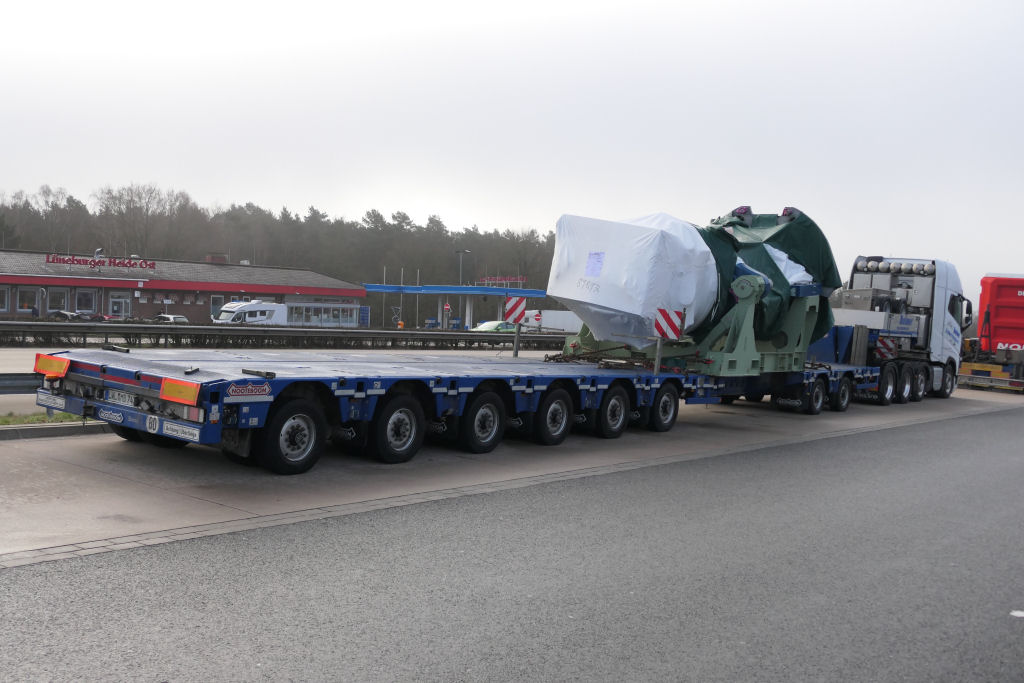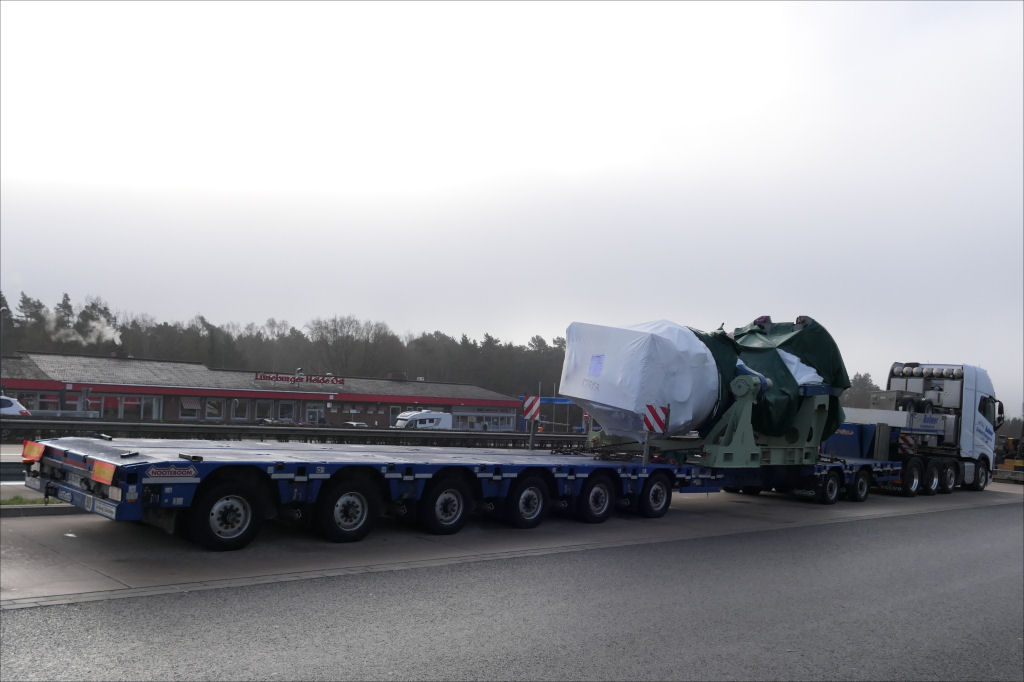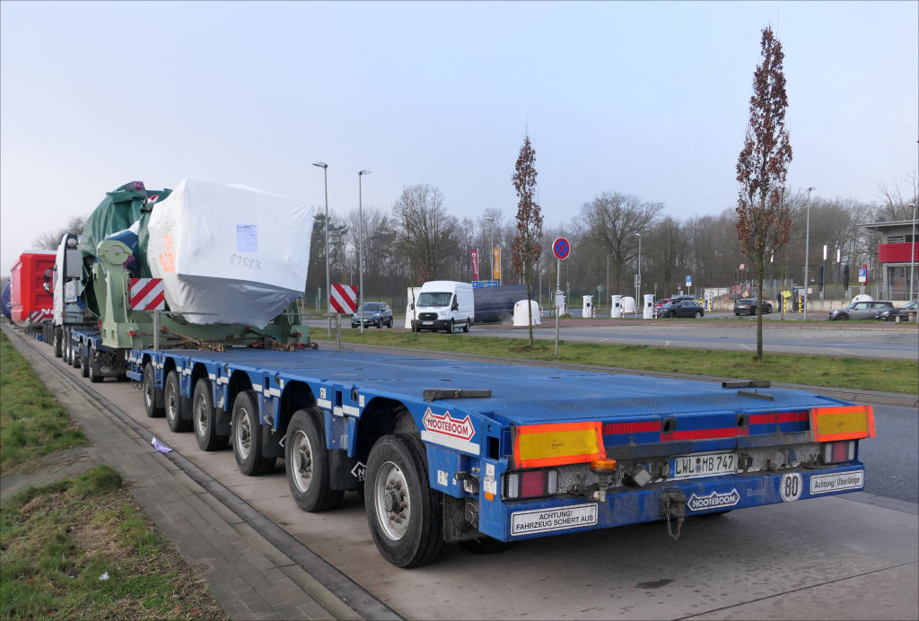 Volvo FH 04 750 mit Nooteboom 2-6 Tieflader und Nordex WEA Triebstrang