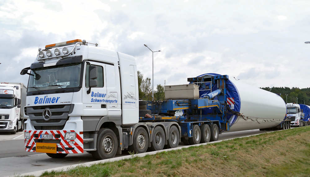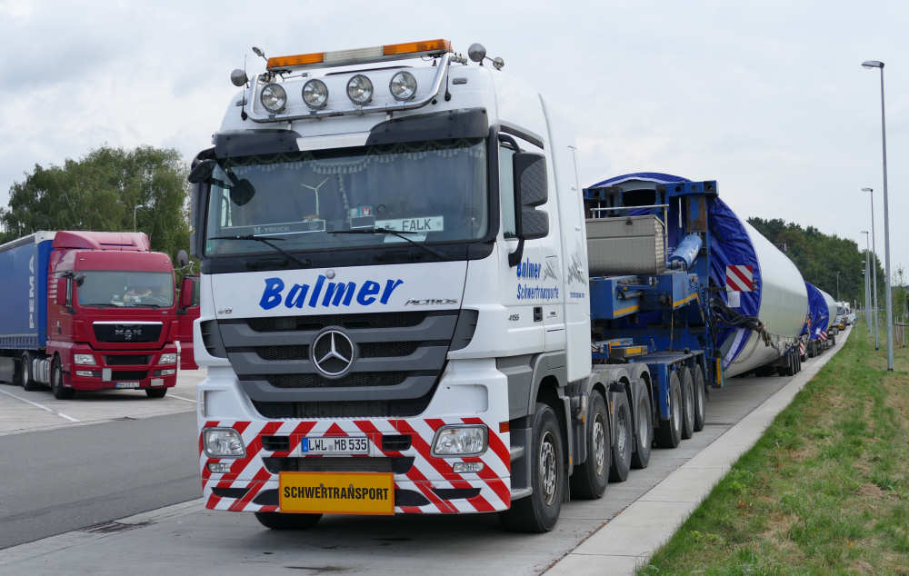 Im September 2016 konnte ich zwei WEA Transporte von Balmer auf dem Rastplatz Seevetal an der A 7 fotografieren.