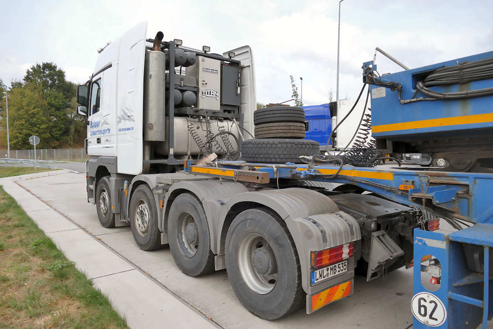 Die erste Kombination bestand aus MB 4155 Actros MP 3 Titan Zugmaschine mit Goldhofer