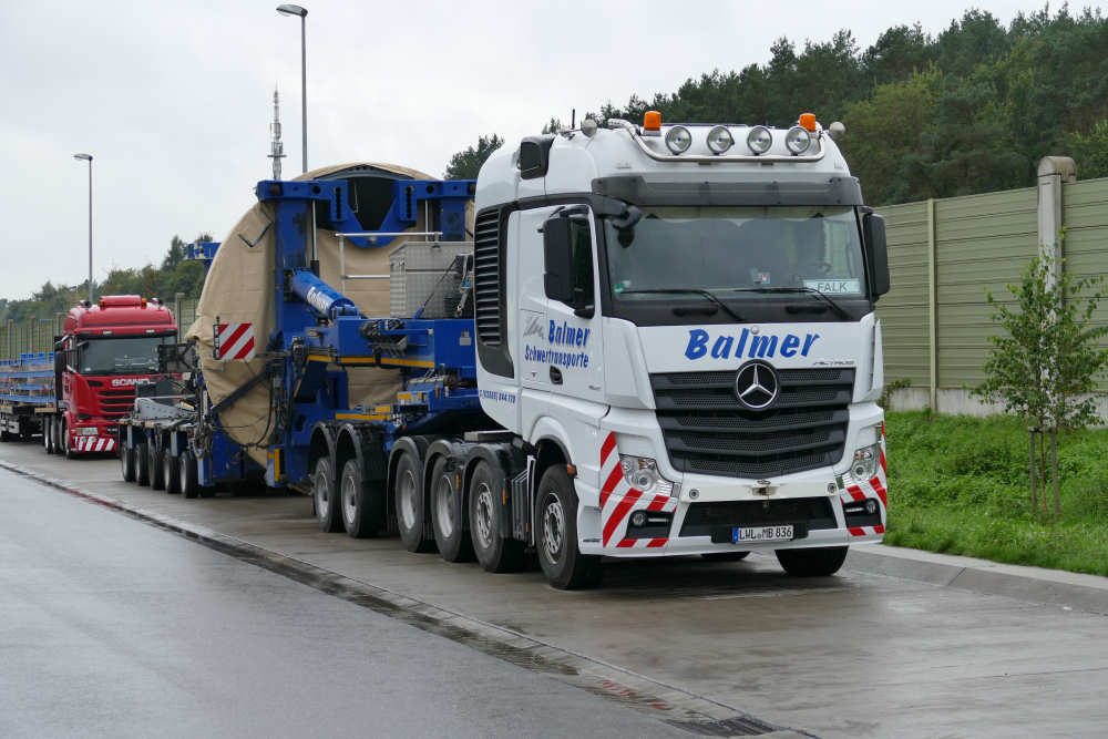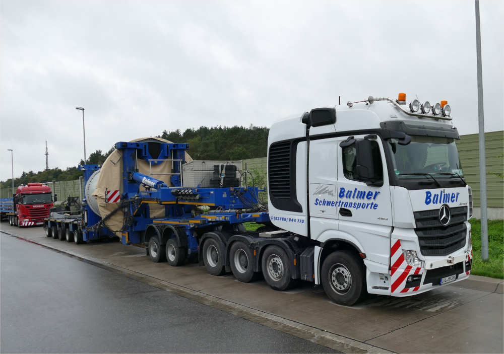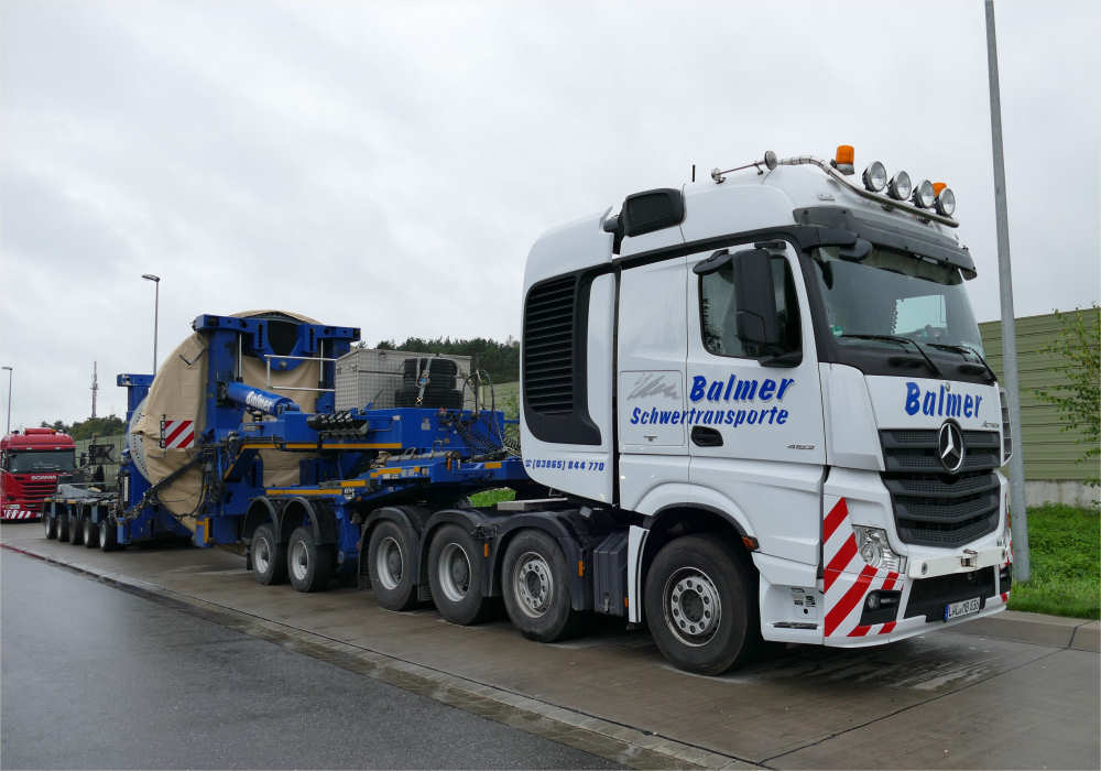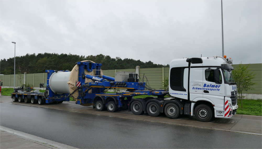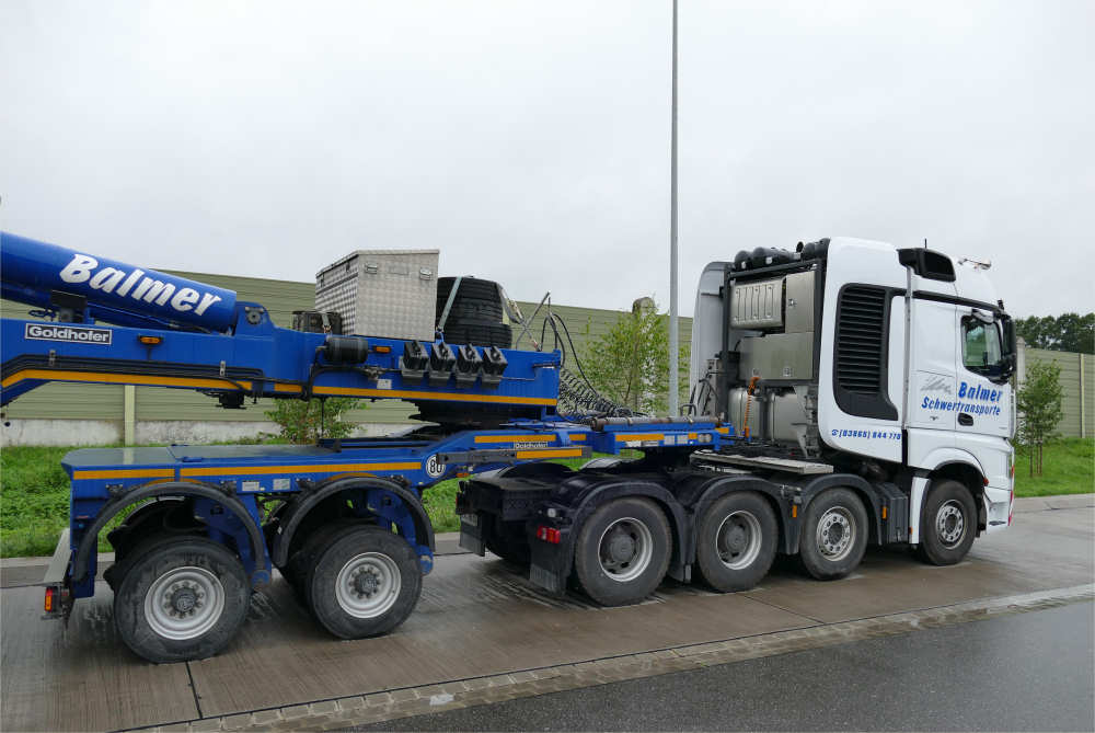 MB 4158 Actros SLT Titan mit Goldhofer 2/5 Rohradapterkombination und Turmadaptersegment