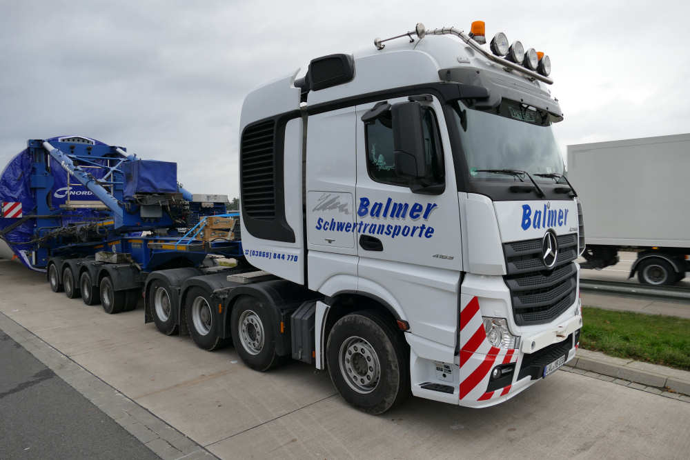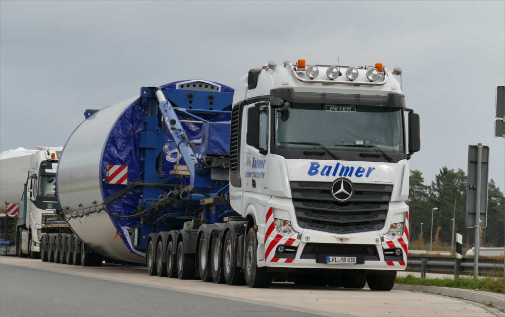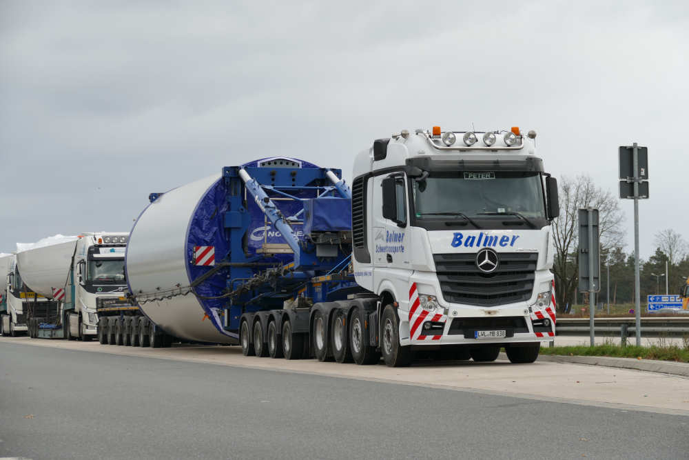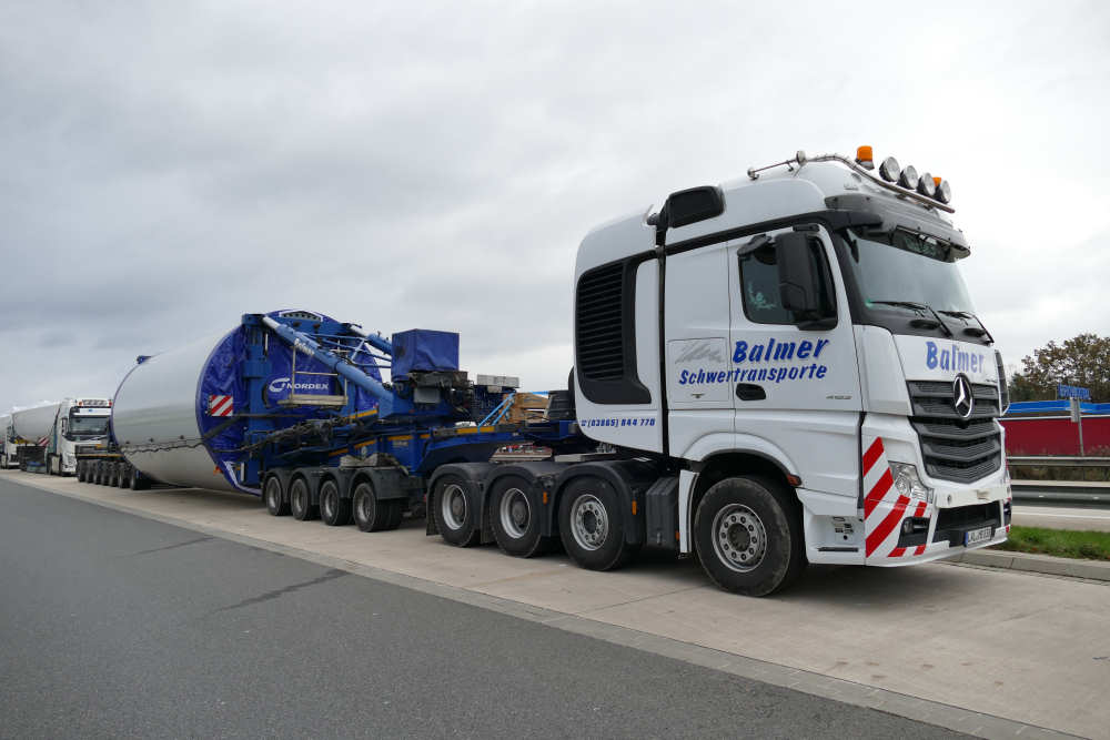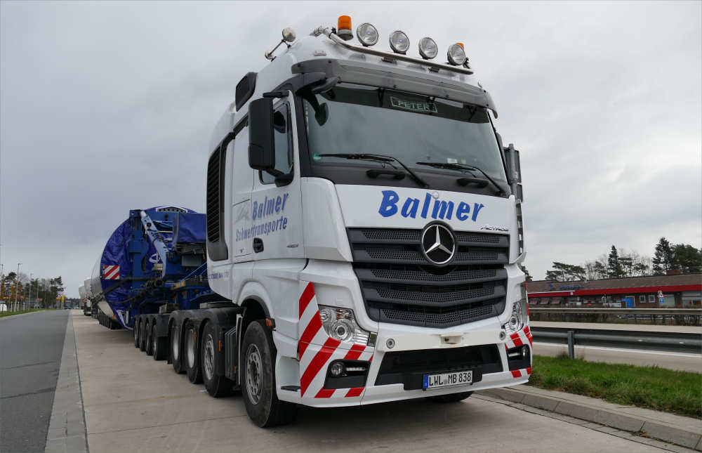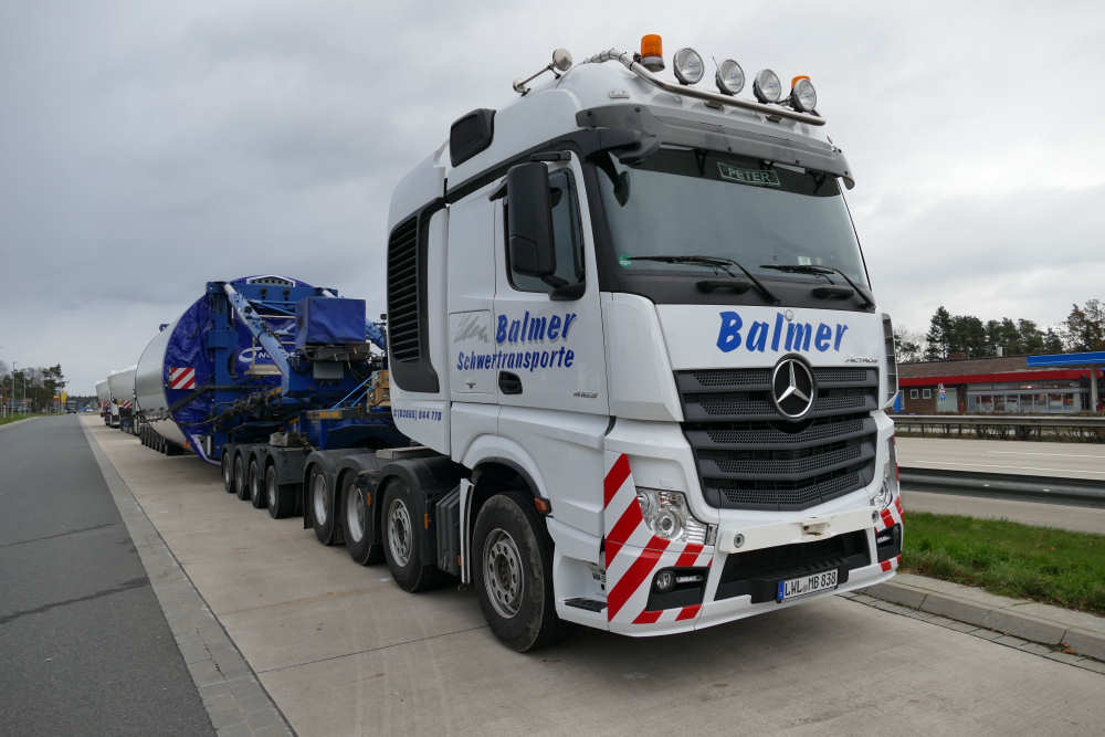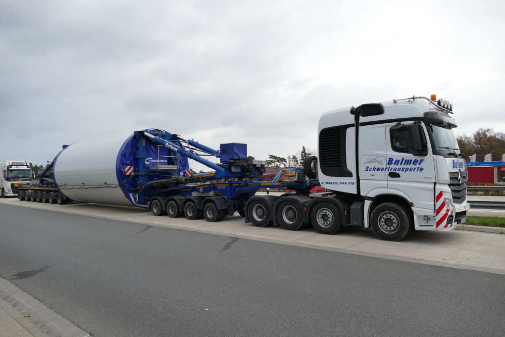 MB 4158 Actros SLT Titan mit Goldhofer 4/7 Megawindmilltransporter und WEA Turmsektion