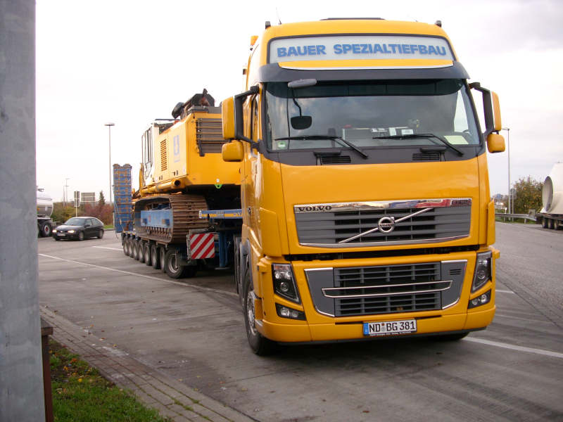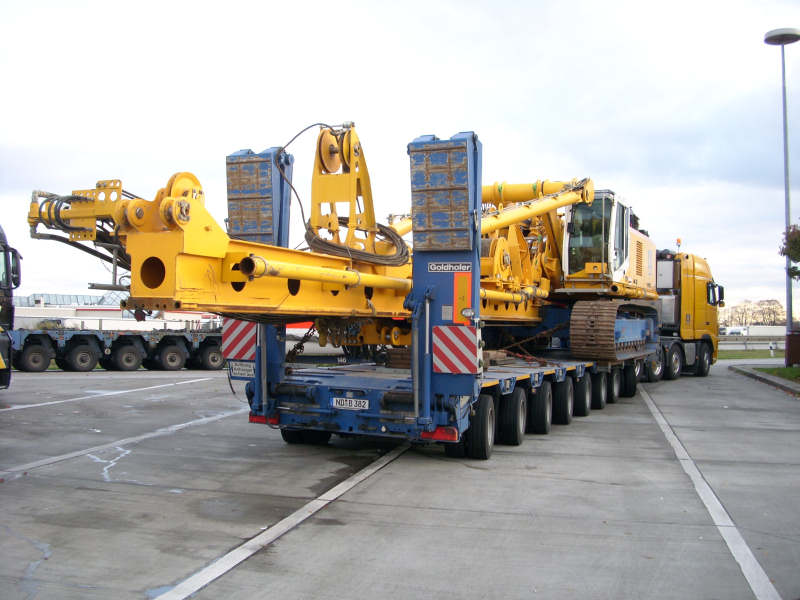 Geladen war eine Bauer BG 28 Großdrehbohrgerät.