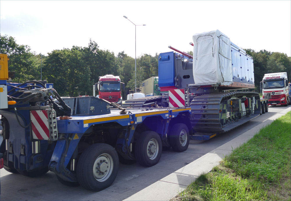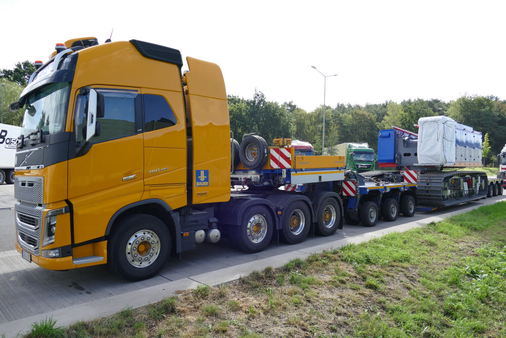 Im September 2020 transportierte Bauer Spezialtiefbau ein Trägergerät