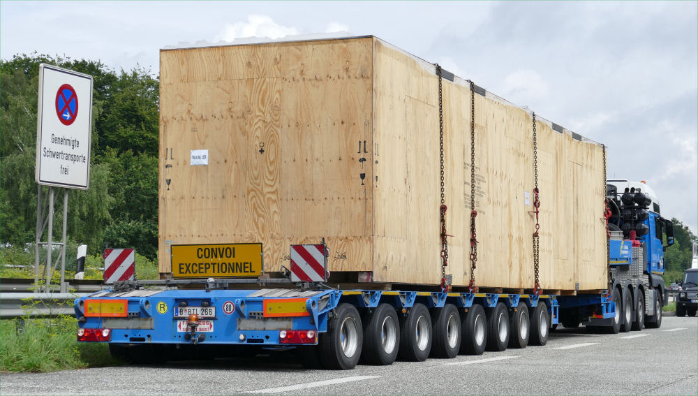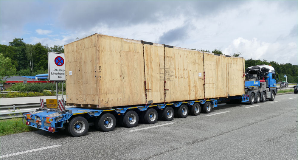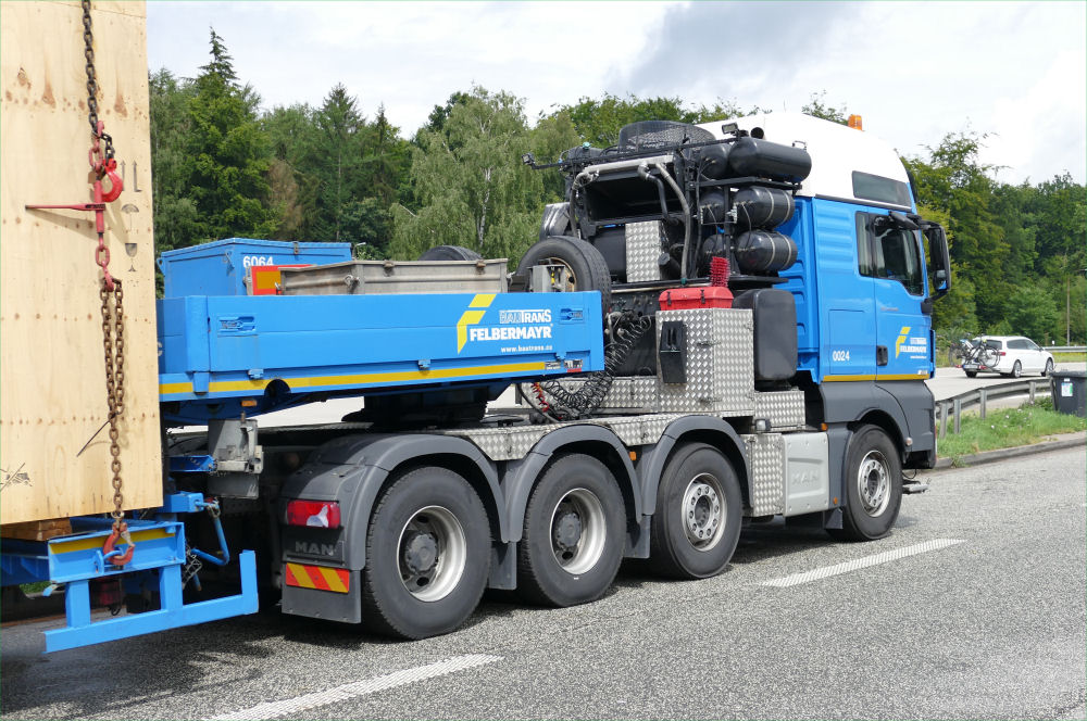 MAN 41.640 TGX mit Maschinenkistentransport für den Export