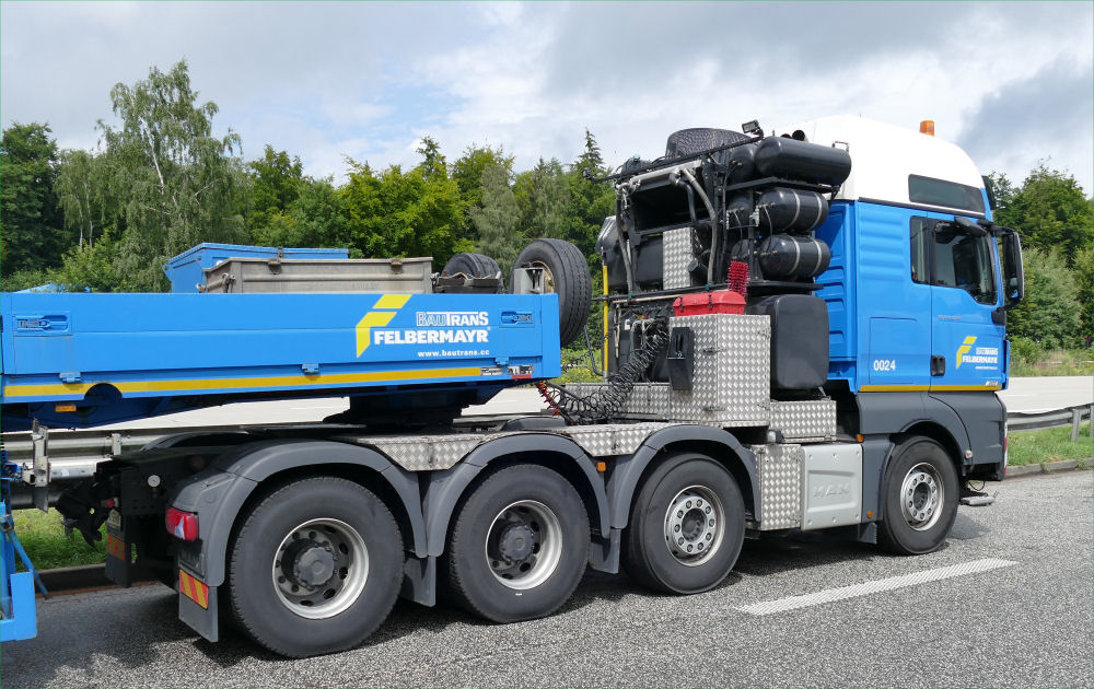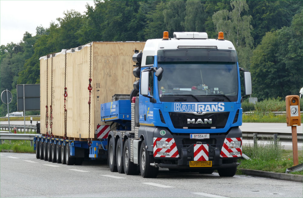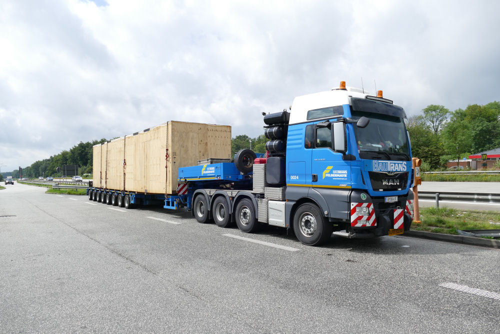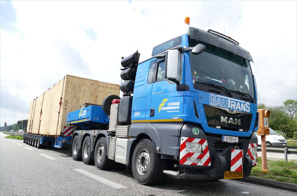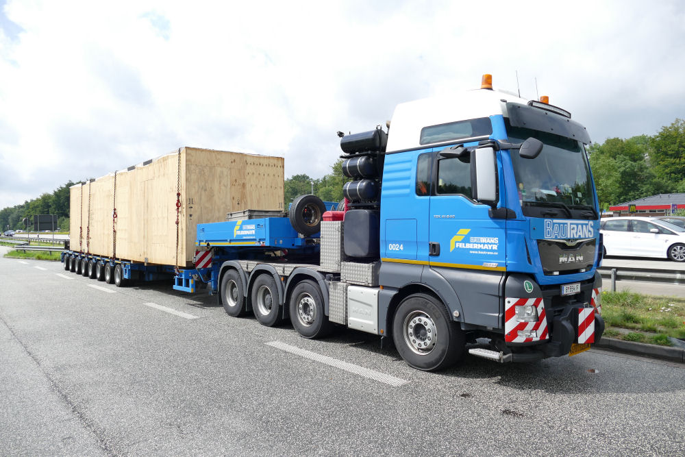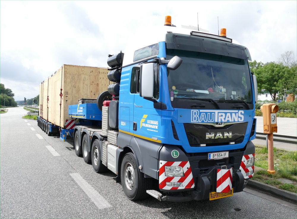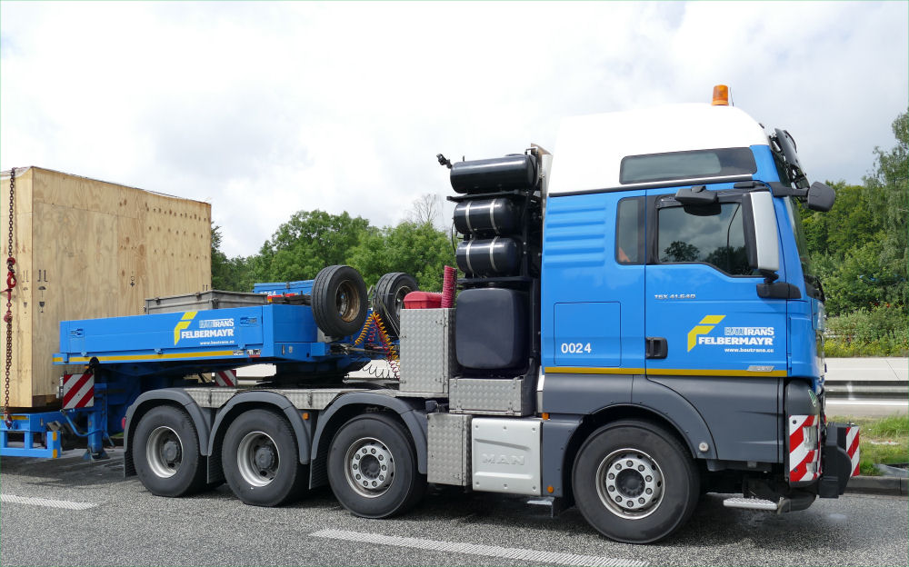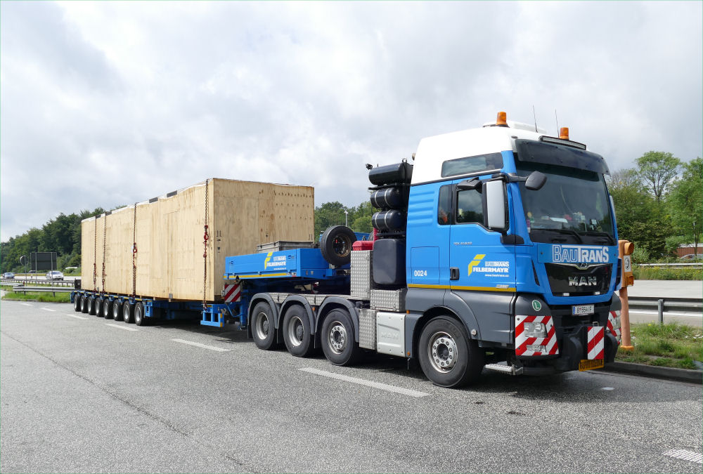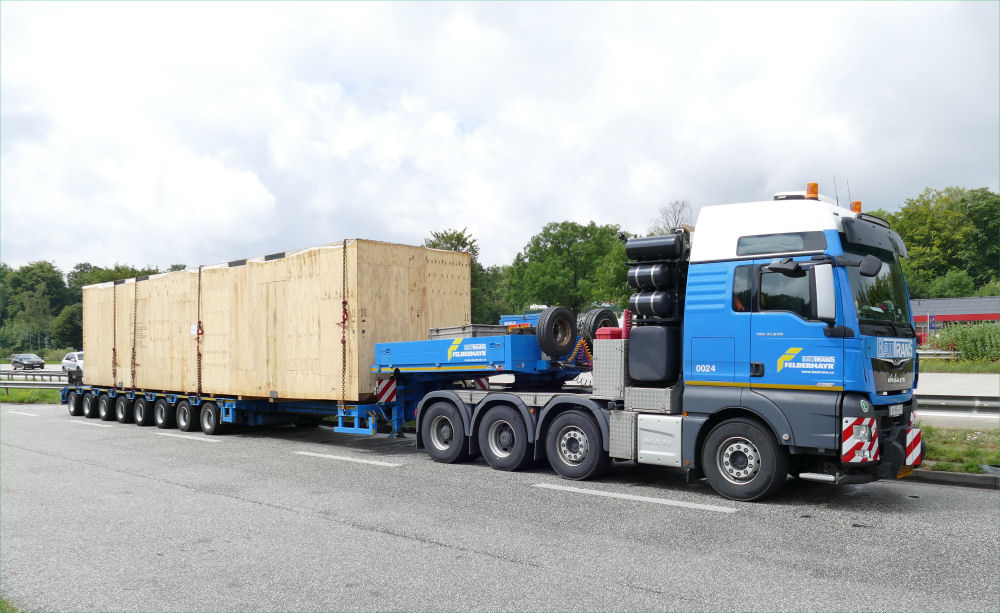 MAN 41.640 TGX mit Maschinenkistentransport für den Export