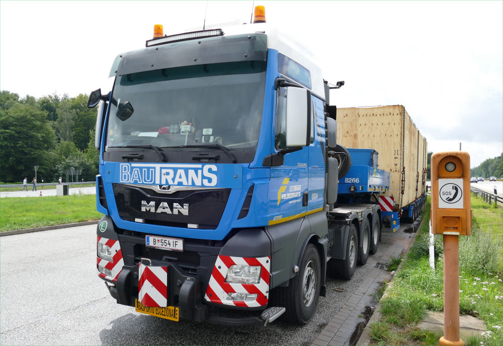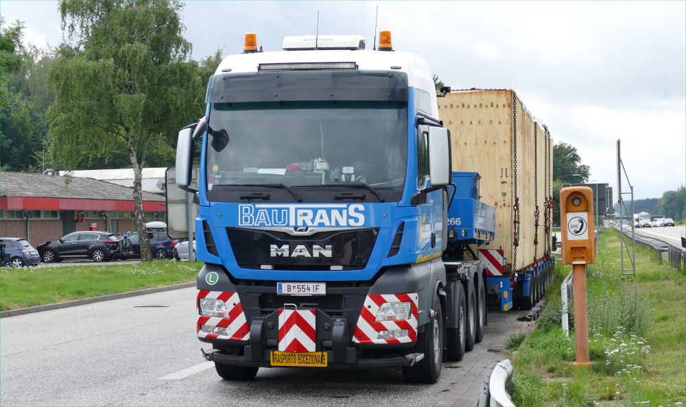 Im Juli 2020 stand dieser Transport von Bautrans an einem Wochenende auf dem Rasthof Buddikate Ost an der A 1.