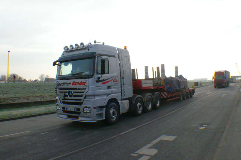 Die MB 4155 Titan war mit einem 4achs Nooteboom Semi Tieflader untwegs.