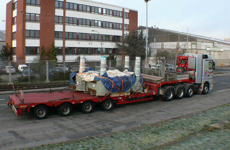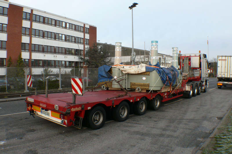 Im Dezember 2009, kam dieser kleinere Maschinenteiltransport in den Hamburger Hafen.