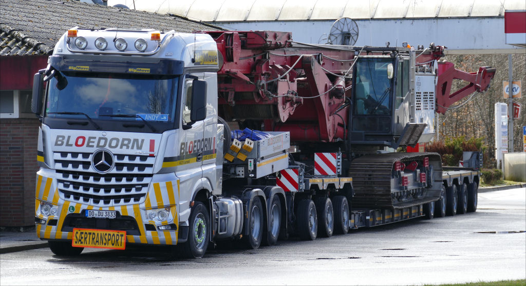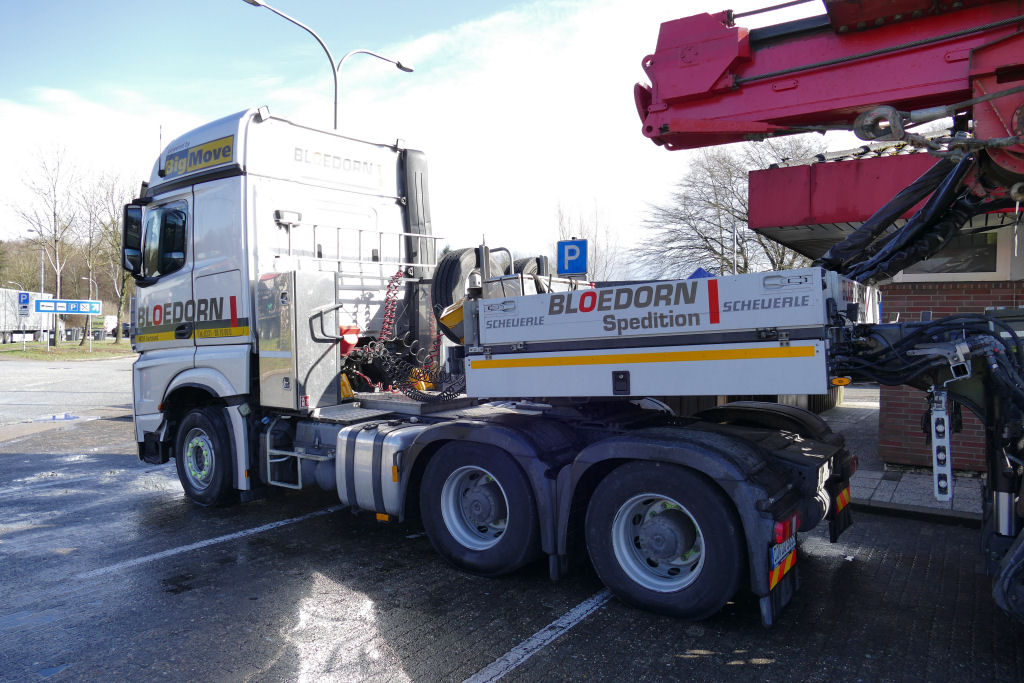 Die Schwerlastkombination bestand aus MB 3358 Arocs mit Scheuerle Euro Compact 3-5 Modultieflader,