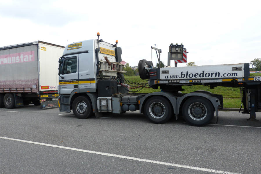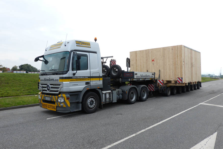 Zugmaschine war eine MB 2660, der Auflieger ein 8achs Goldhofer Semi Tieflader.
