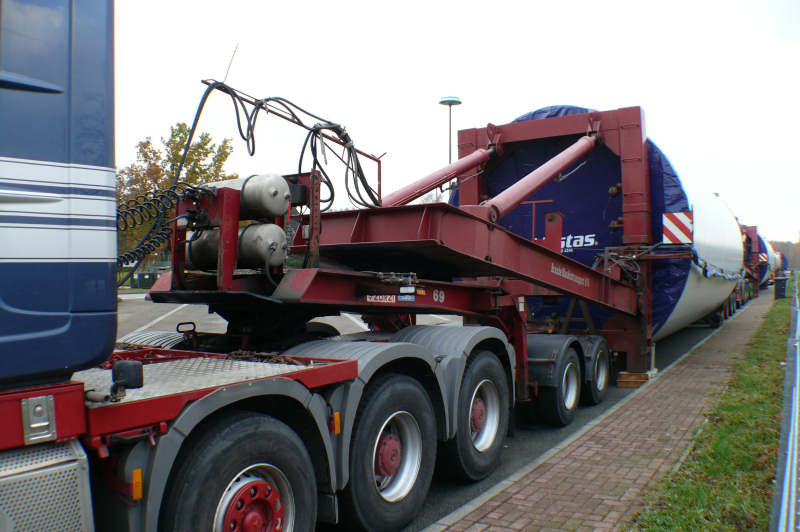 auf dem Rasthof Holmmoor Richtung Süden. Die Ladungen bestanden aus Vestas Turmteilen.
