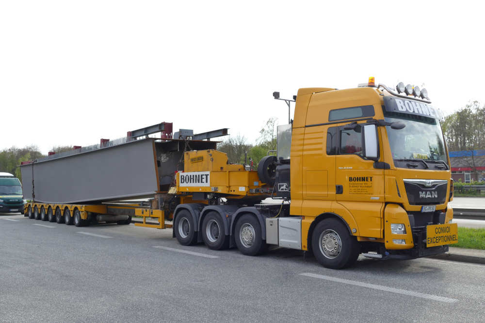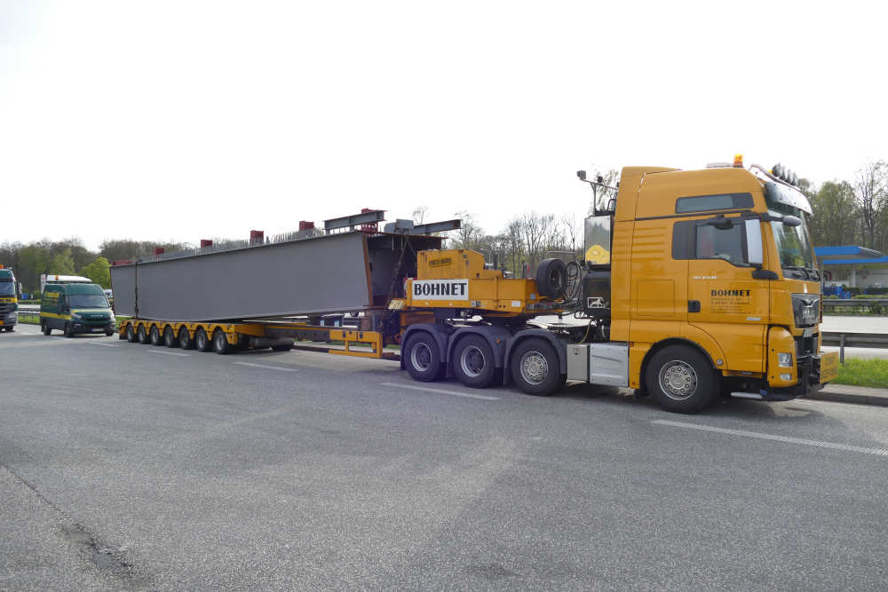 MAN 41.640 TGX mit Brückenteil Transport für die Umgehung Pinneberg