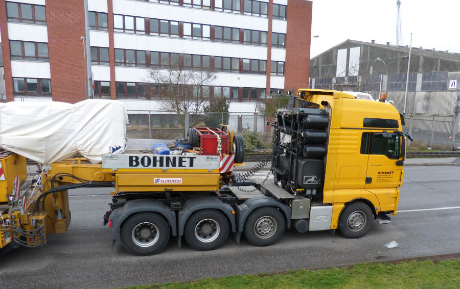 2x MAN 41.680 TGX mit Scheuerle Intercombi Sattelroller und 80 t Industrieteil