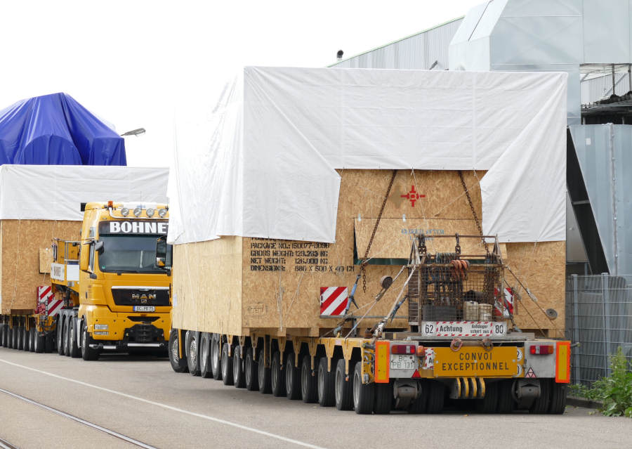 2x MAN 41.680 TGX mit Pressenteilen für den Export, in Heilbronn