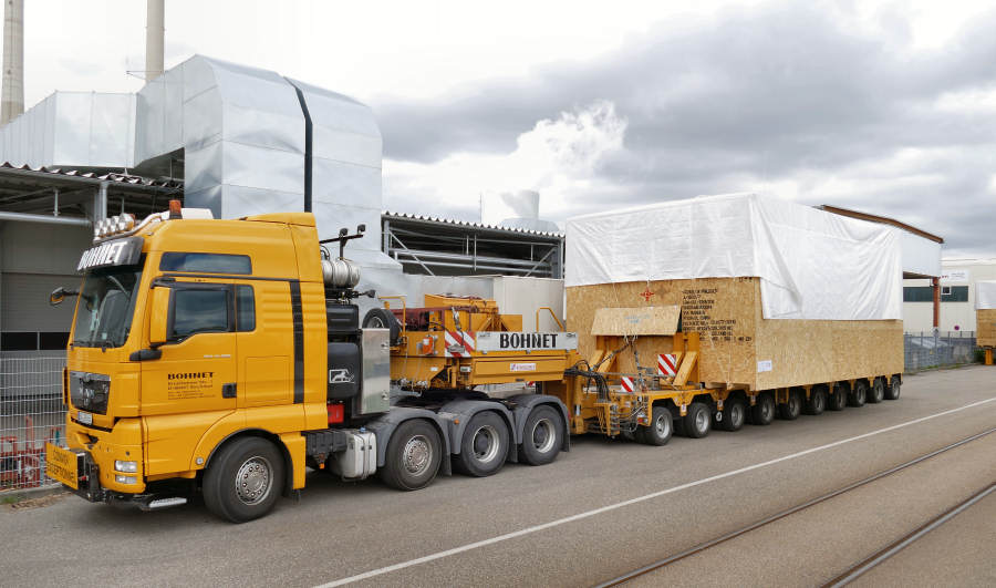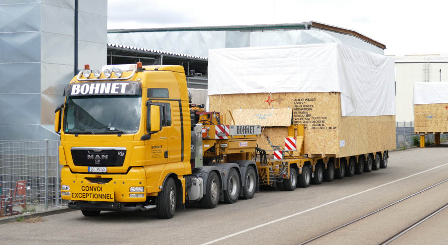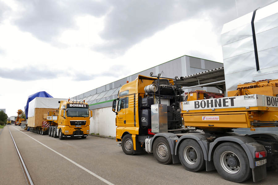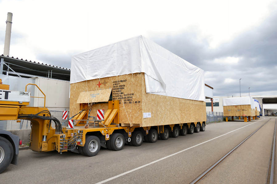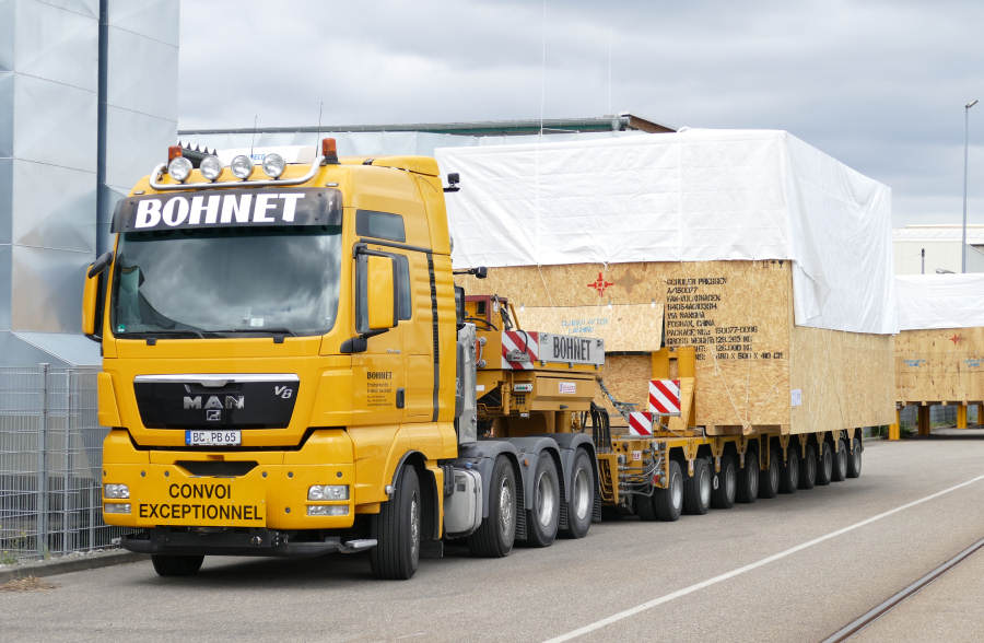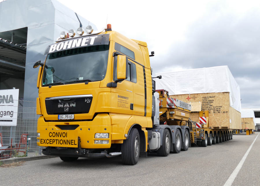 Die Kombinationen bestanden aus MAN 41.680 XXL zehnachsigen Sattelrollern, wobei einer ein Goldhofer THP und der