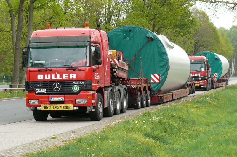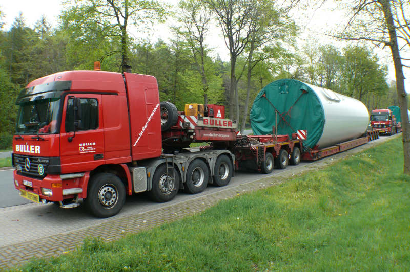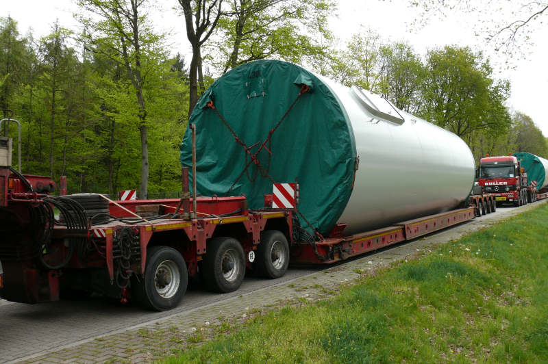 Die Ladungen waren Enercon WEA Turmteile auf dem Weg Richtung NRW.