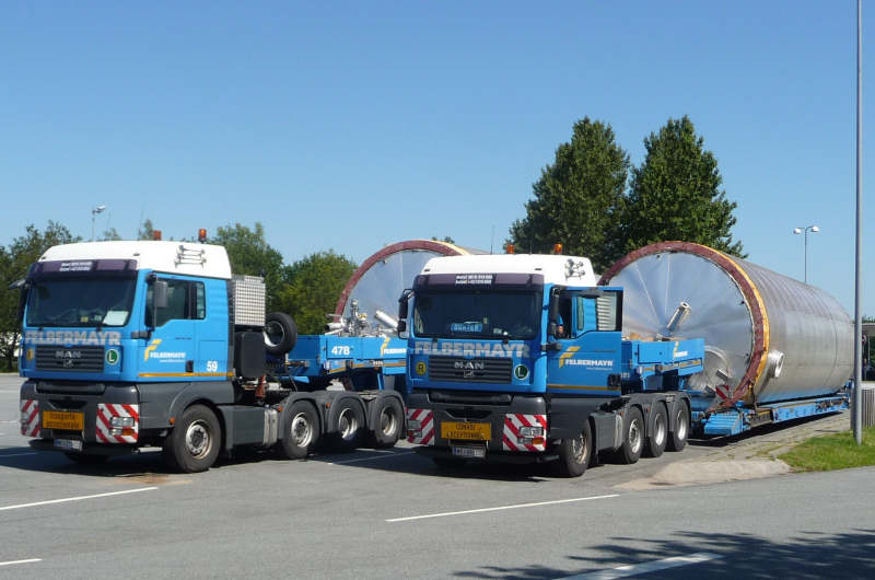 Zwei Silo Transporte auf dem Schwerlastparkplatz im Dänischen Frøslev.