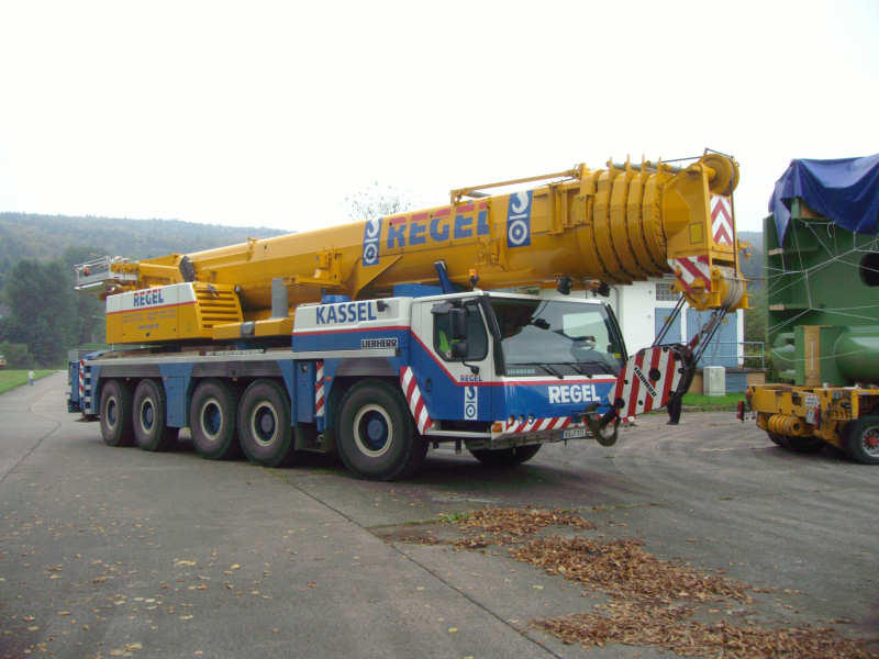 Als Rüstkran, zum auslegen der Auffahrrampen, kam ein LTM 1220-5.1 von Regel zum Einsatz.