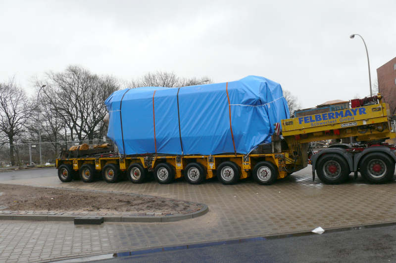 Transport eines Maschinenteiles für den Export