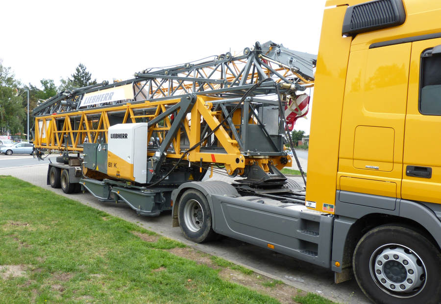 MB 1944 MP 3 mit Liebherr 81 K Schnellbaukran Transport