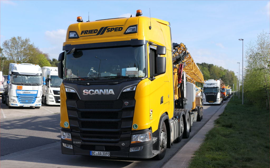 Im Mai 2022 stand dieser Transport von Fried Sped auf dem Rastplatz Seevetal an der A 7.
