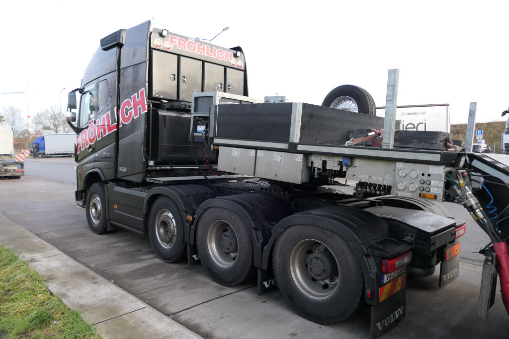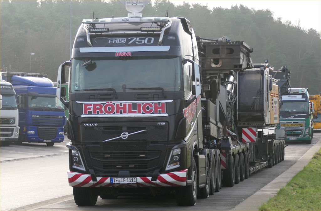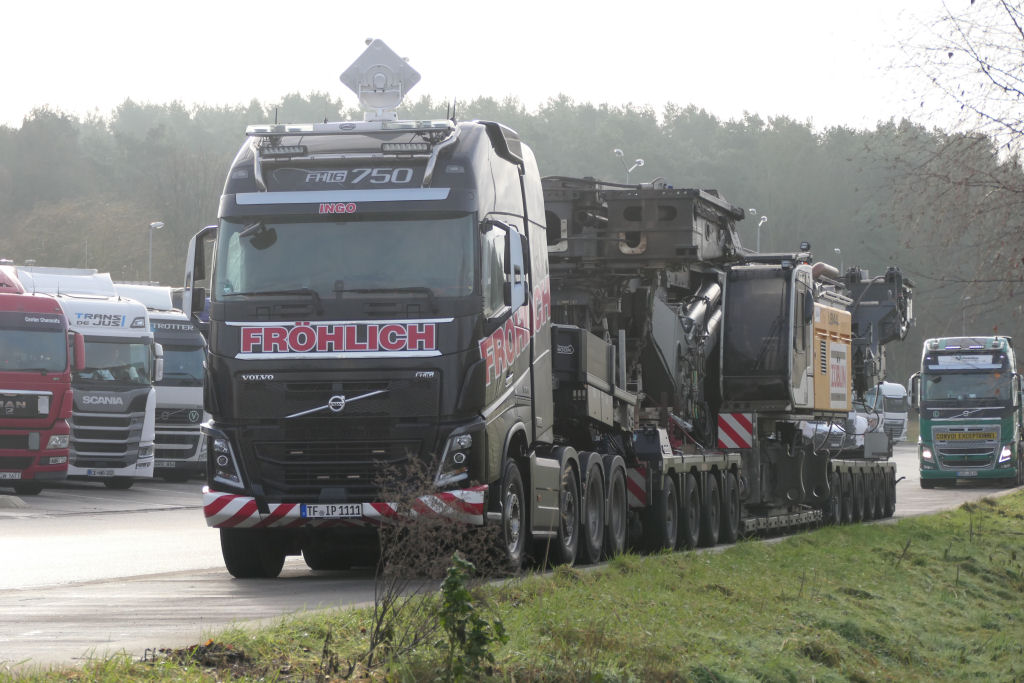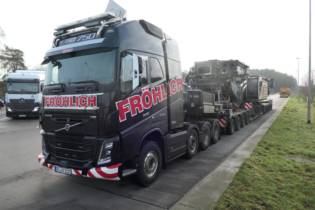 Im Januar 2022 transportierte Fröhlich ein Liebherr LB 44 Grundgerät Richtung Hamburg. Der Transport stand auf dem