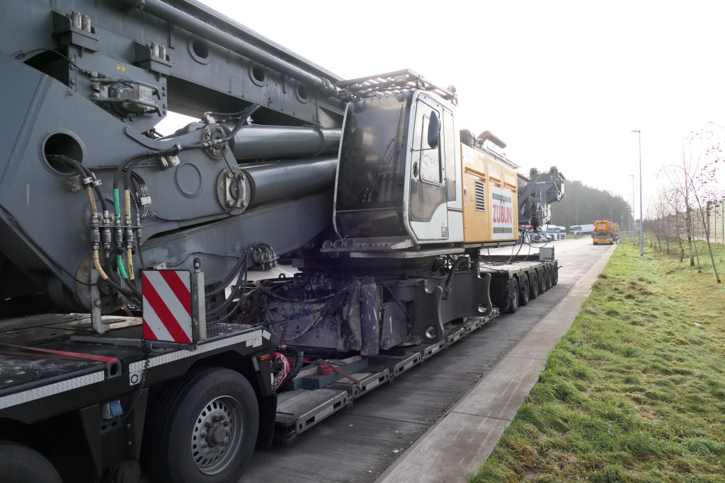 Aus Gewichtsgründen wird das LB 44ohne Ballast und Raupenlaufwerke transportiert, es hat so ein Transportgewicht von 83 t
