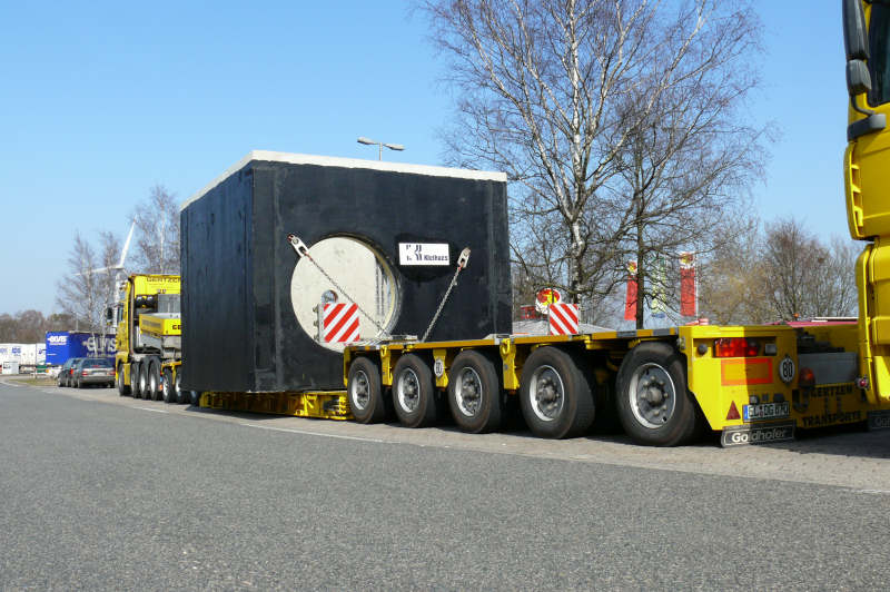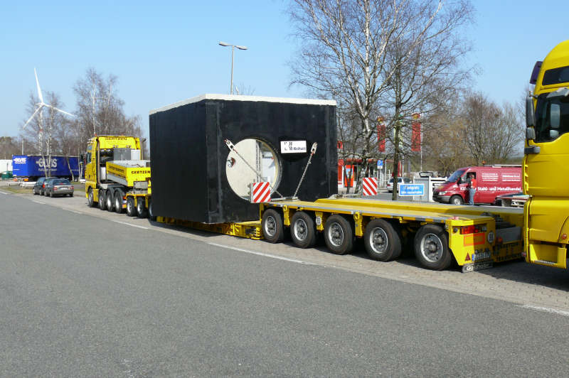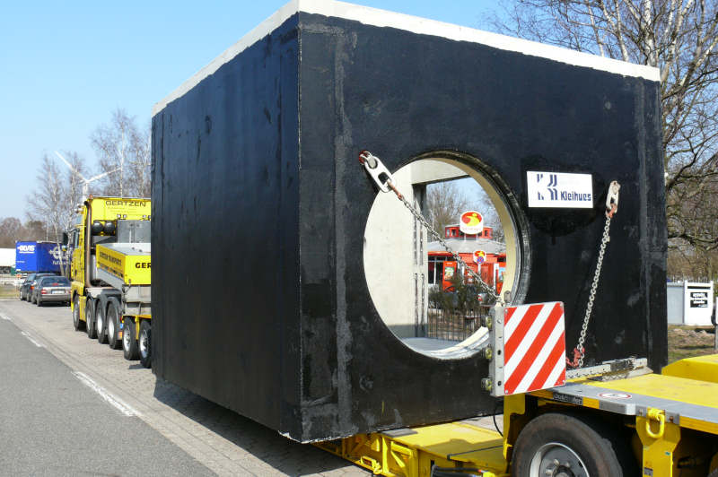 Transport eines 50 t schweren Betonschachtes