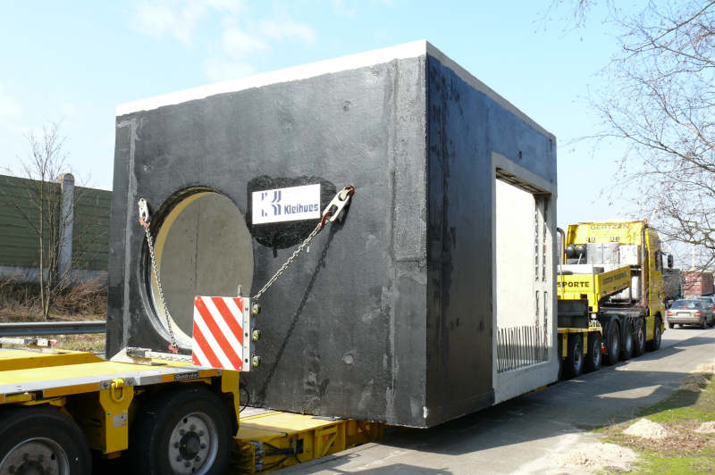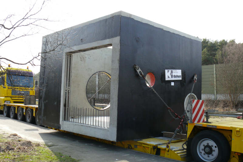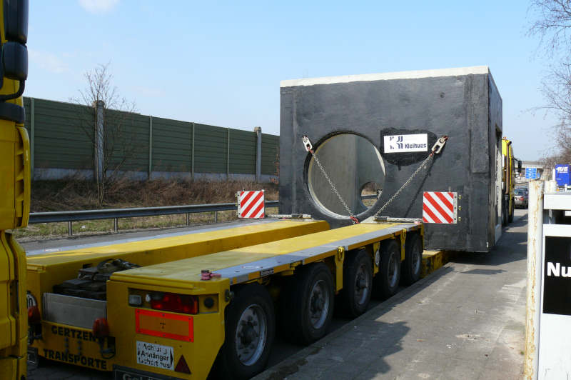 Transport eines 50 t schweren Betonschachtes