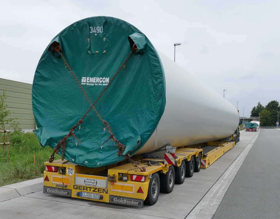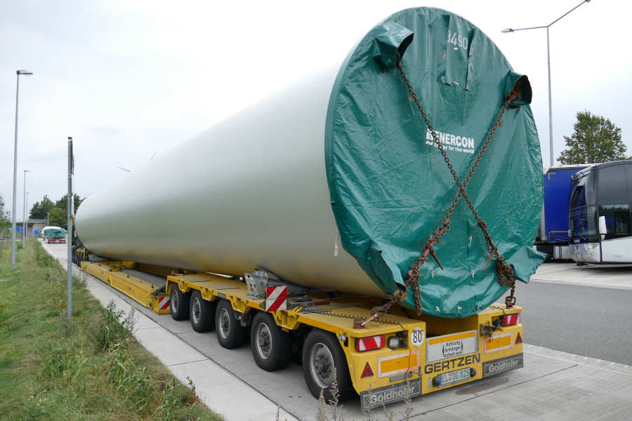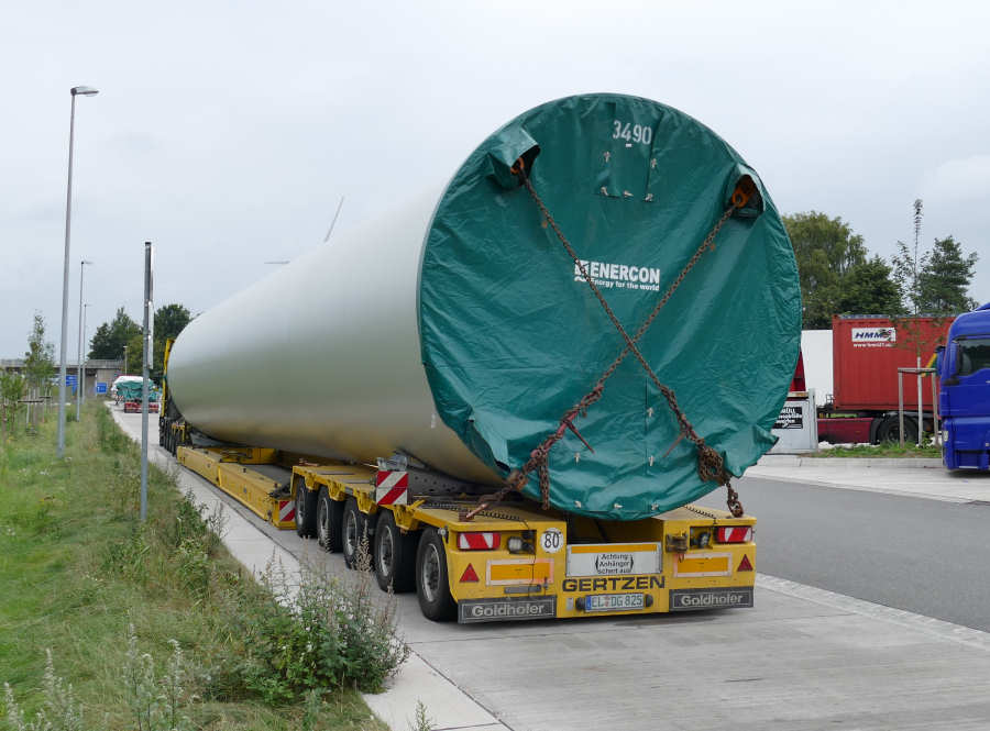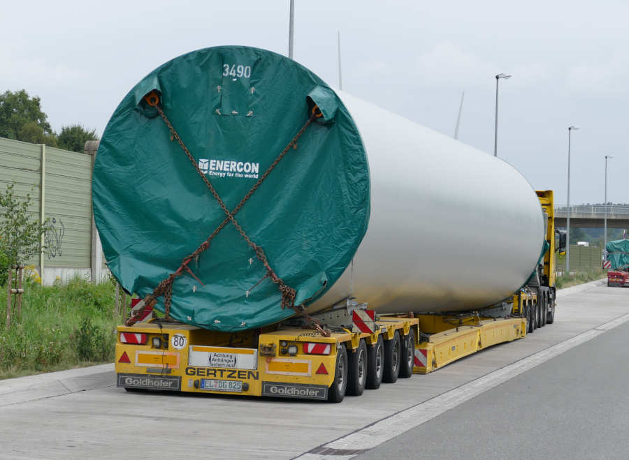 Volvo FH 16 700 mit Goldhofer STZ VP 8 Tieflader und Enercon WEA Turmteil