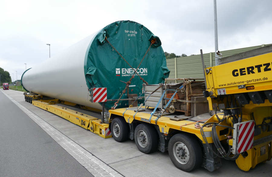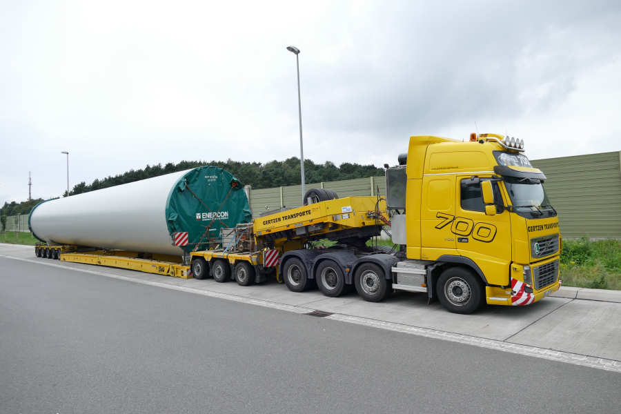 Volvo FH 16 700 mit Goldhofer STZ VP 8 Tieflader und Enercon WEA Turmteil