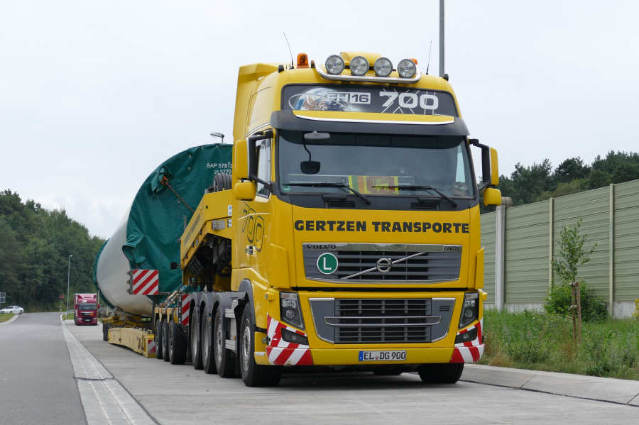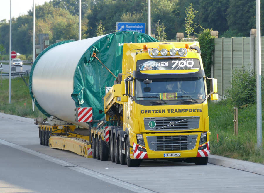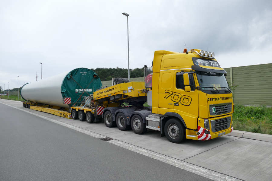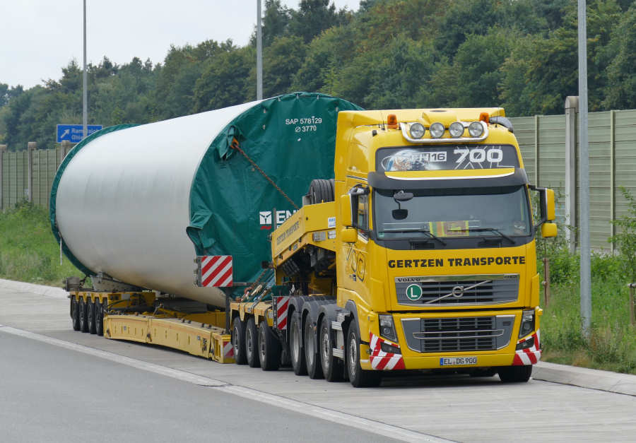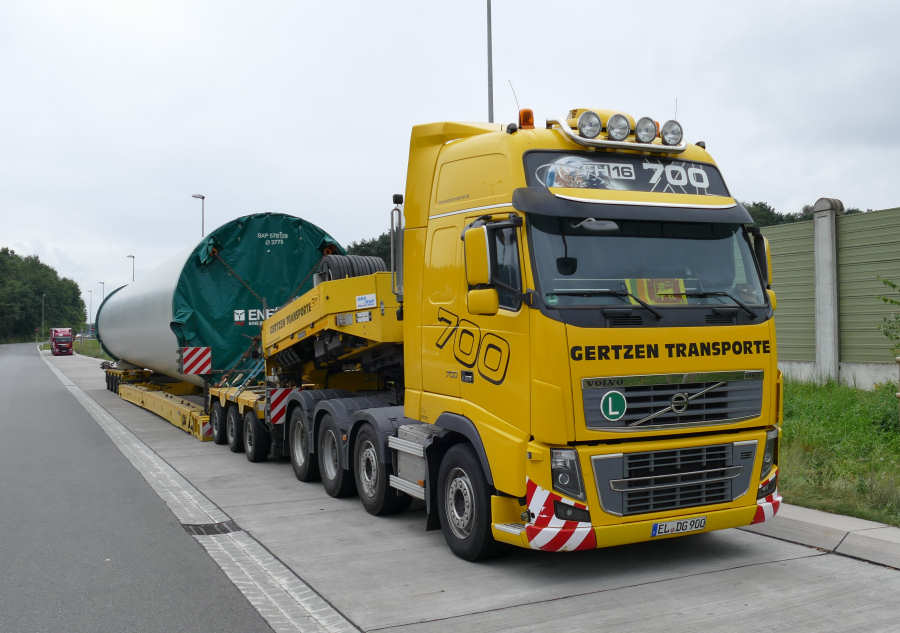 Volvo FH 16 700 mit Goldhofer STZ VP 8 Tieflader und Enercon WEA Turmteil