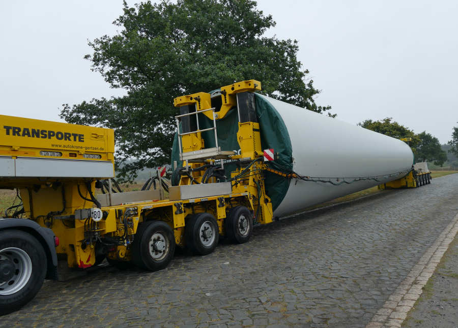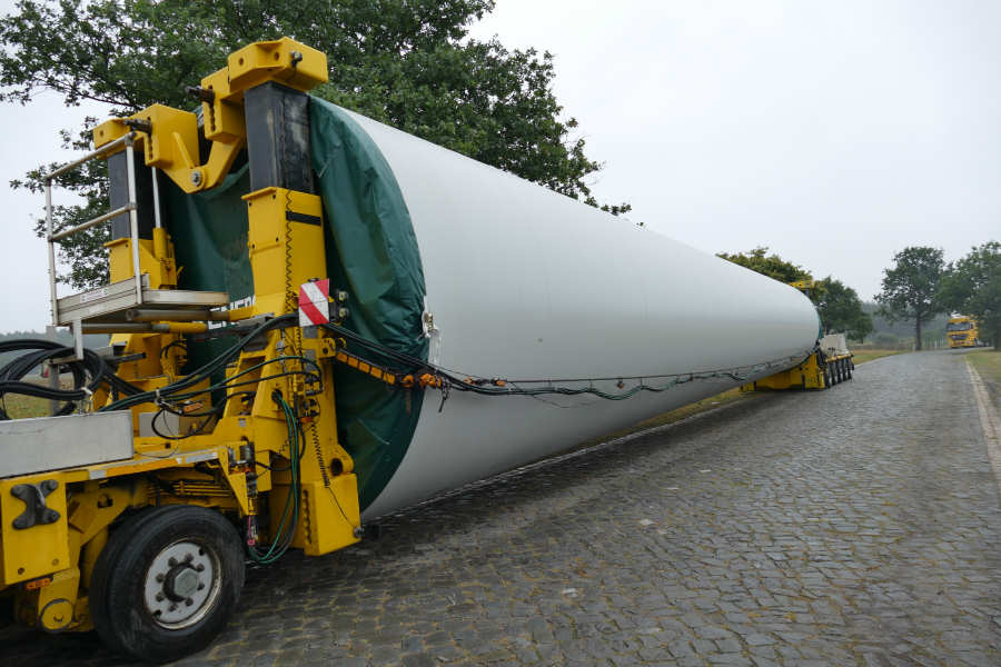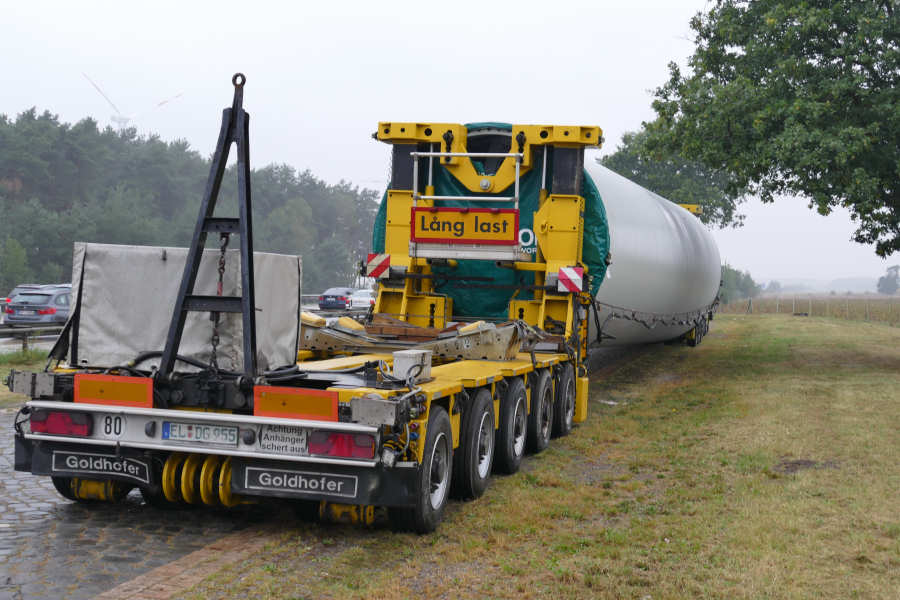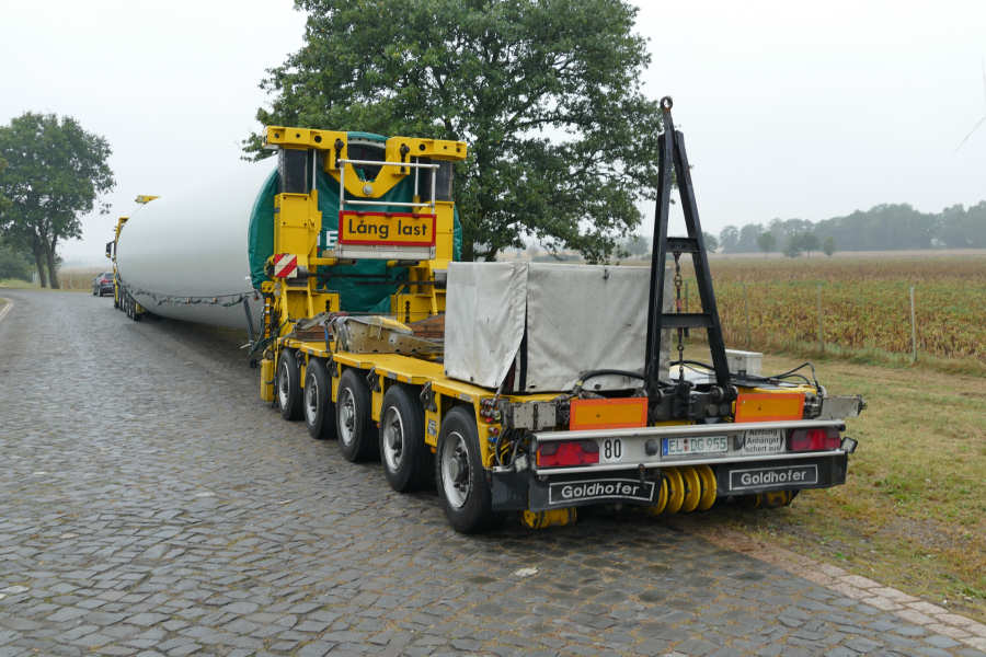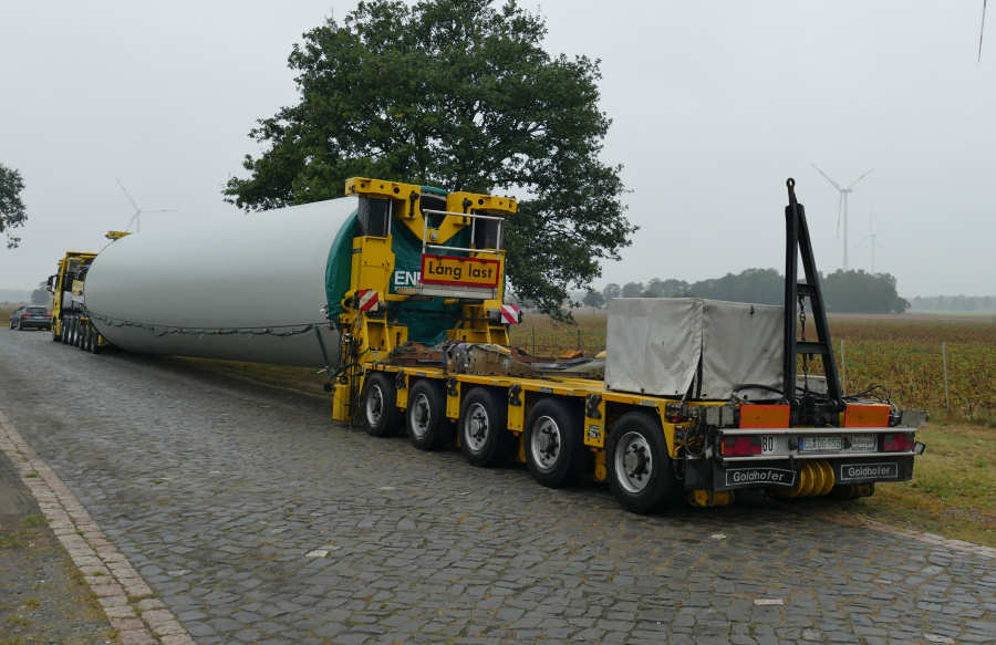 MAN 41.680 TGX mit Goldhofer THP 3/5 Rohradapter Kombination und Enercon WEA Turmteil