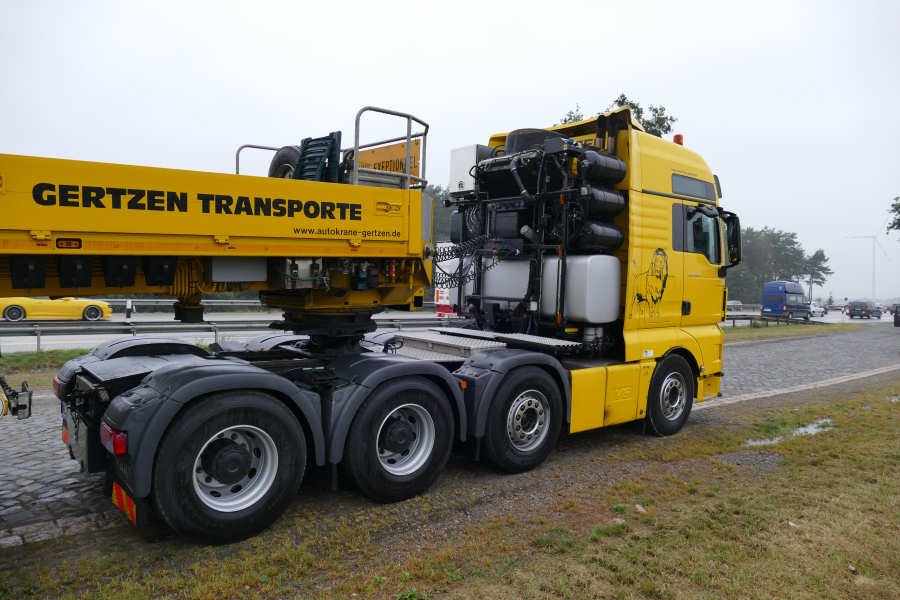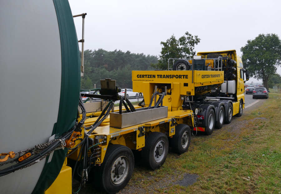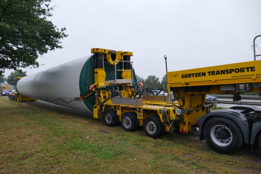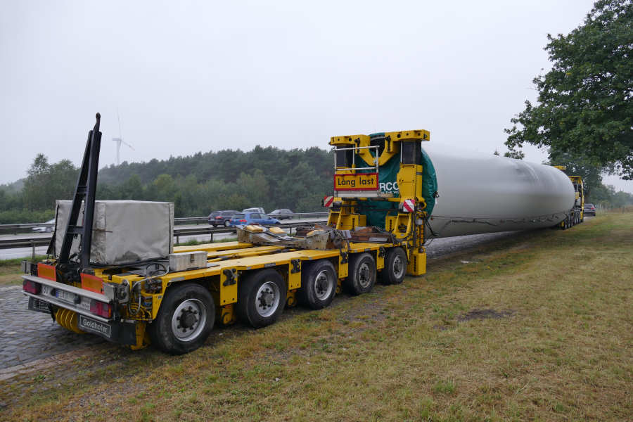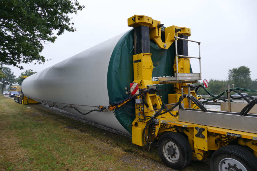 MAN 41.680 TGX mit Goldhofer THP 3/5 Rohradapter Kombination und Enercon WEA Turmteil