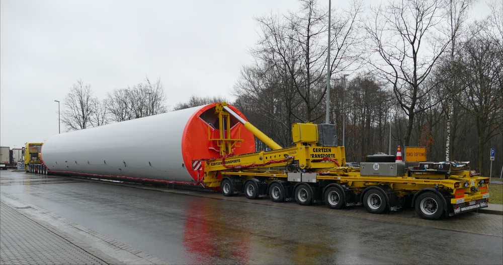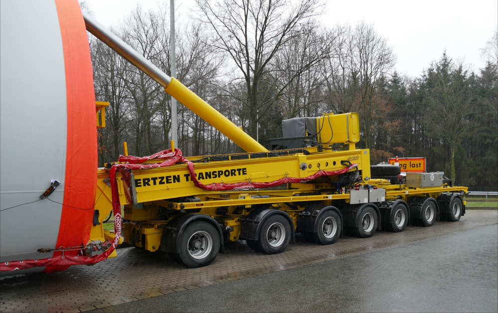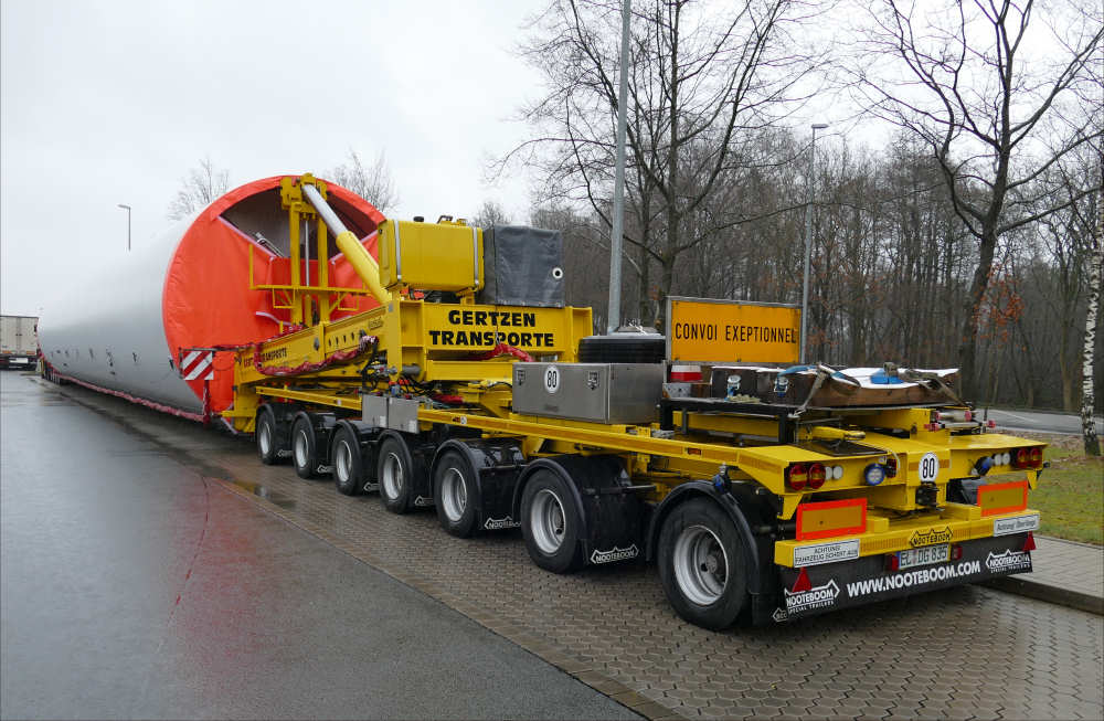 MB 4163 Actros SLT mit Nooteboom 4/7 Megawindmilltransporter und WEA Tumsektion