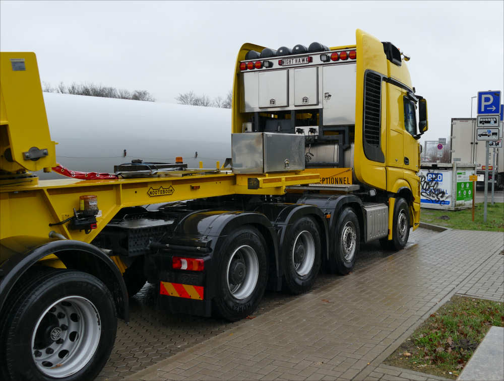 MB 4163 Actros SLT mit Nooteboom 4/7 Megawindmilltransporter und WEA Tumsektion
